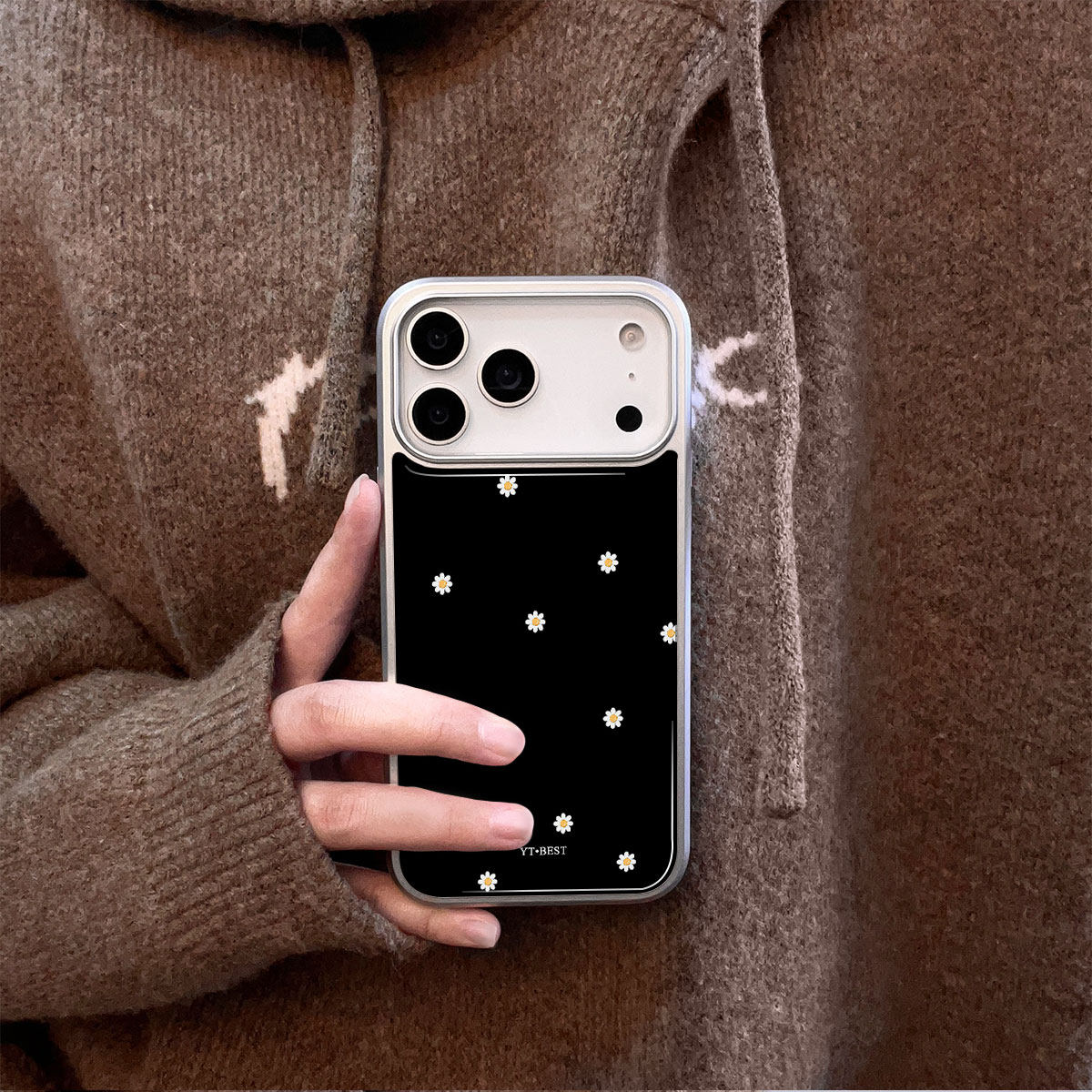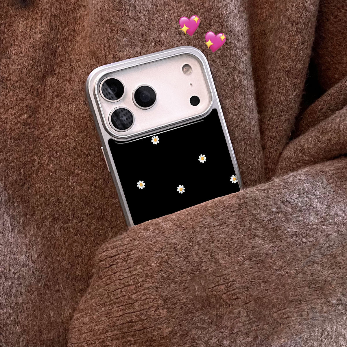 韩风ins黑色小雏菊苹果17promax小众手机壳