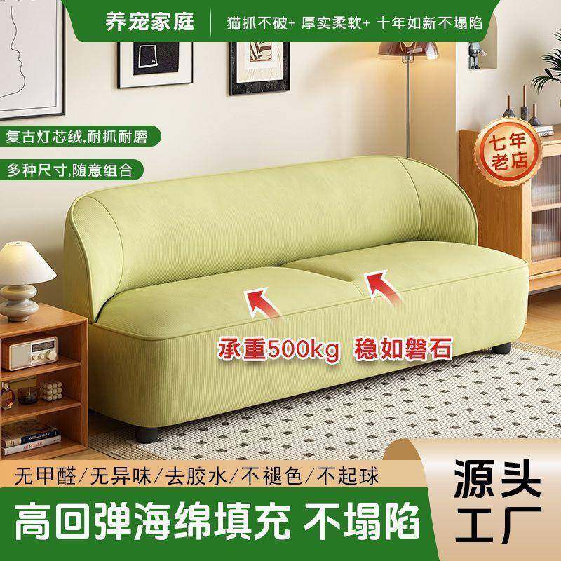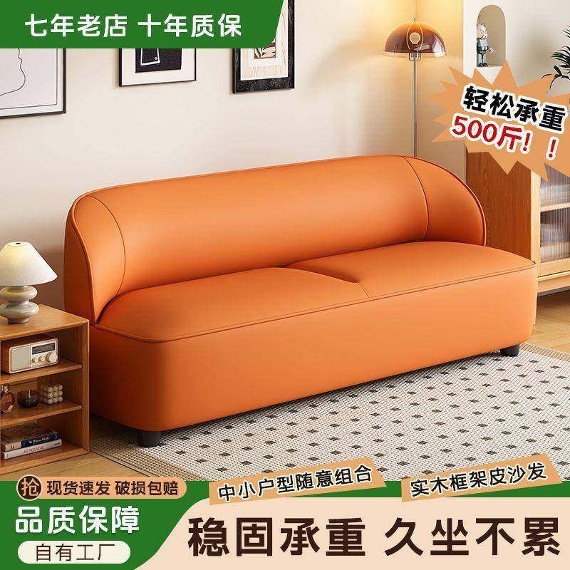 新款双人沙发极简三人小户型公寓意式服装理发咖啡店皮艺布艺沙发