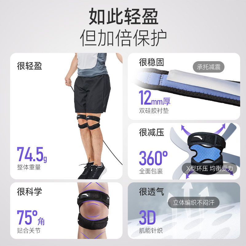 安踏户外徒步登山护膝髌骨带运动女膝盖跑步专业爬山专用关节保护
