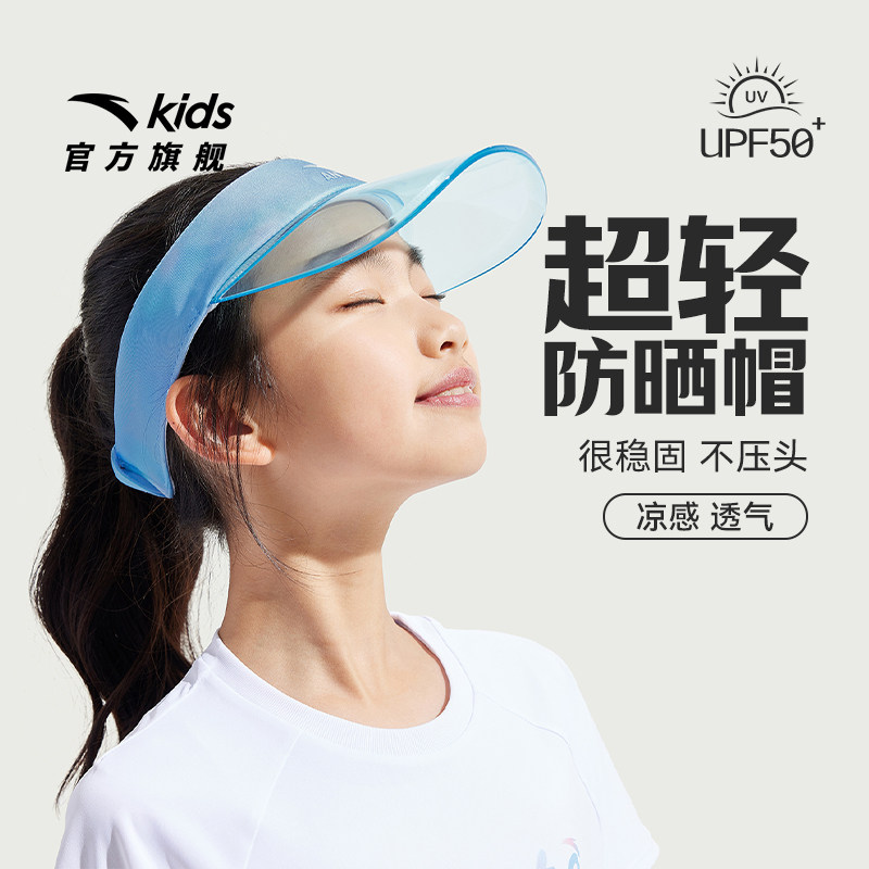 安踏儿童防晒帽子夏季男孩遮阳帽透气太阳帽女童户外帽子空顶帽薄
