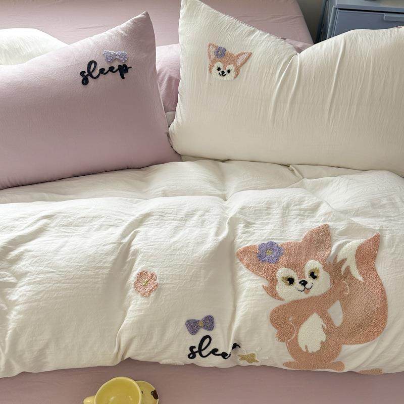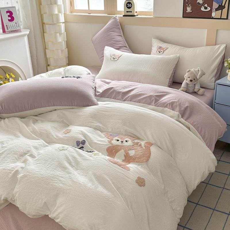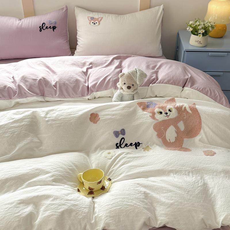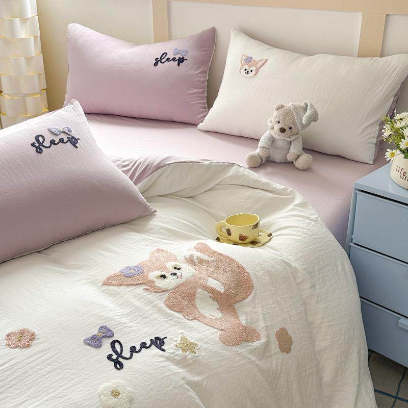 A类婴幼儿级水洗棉四件套床品可爱毛巾绣纯棉三件套床单被套4件套