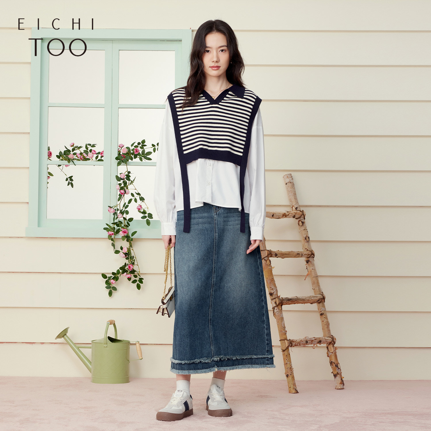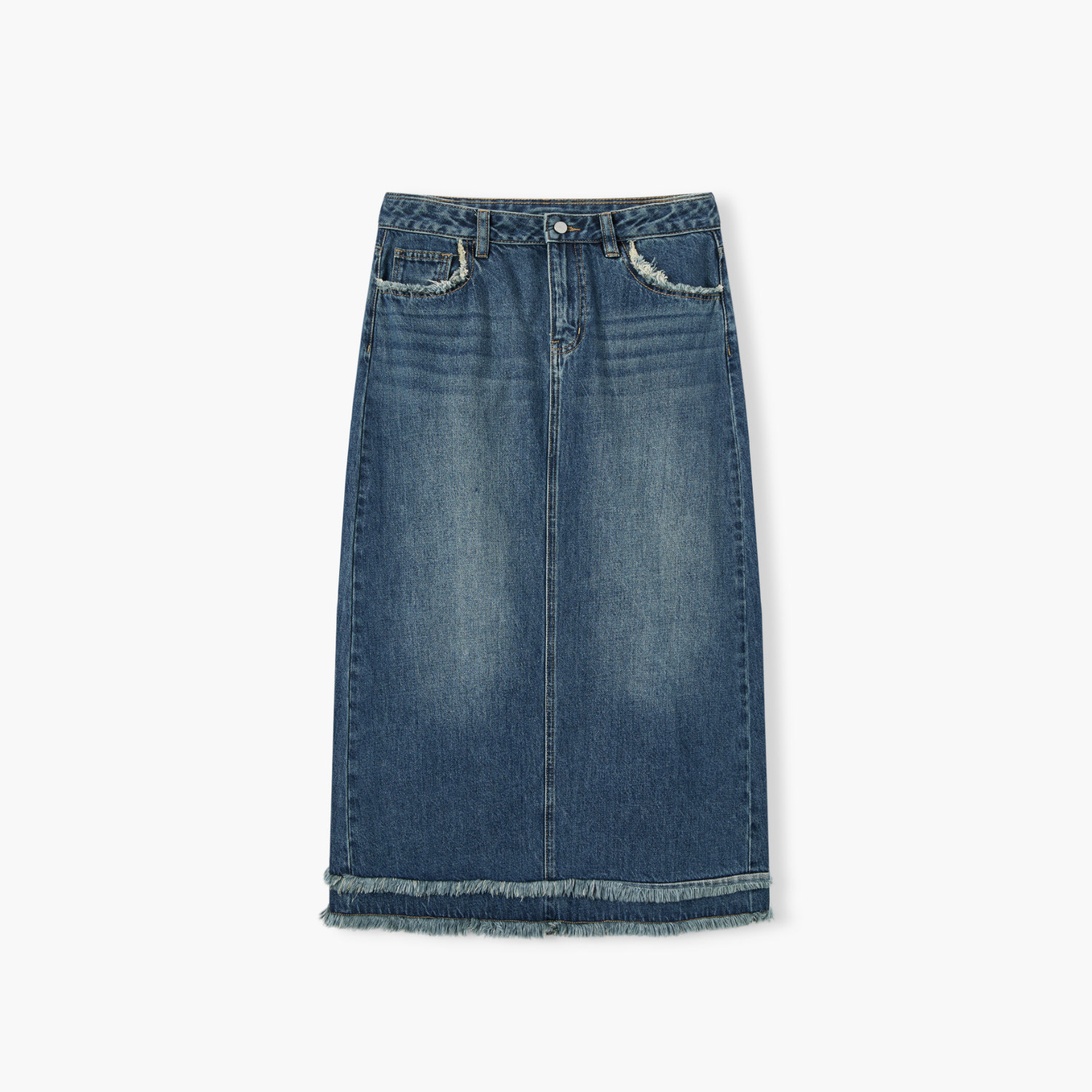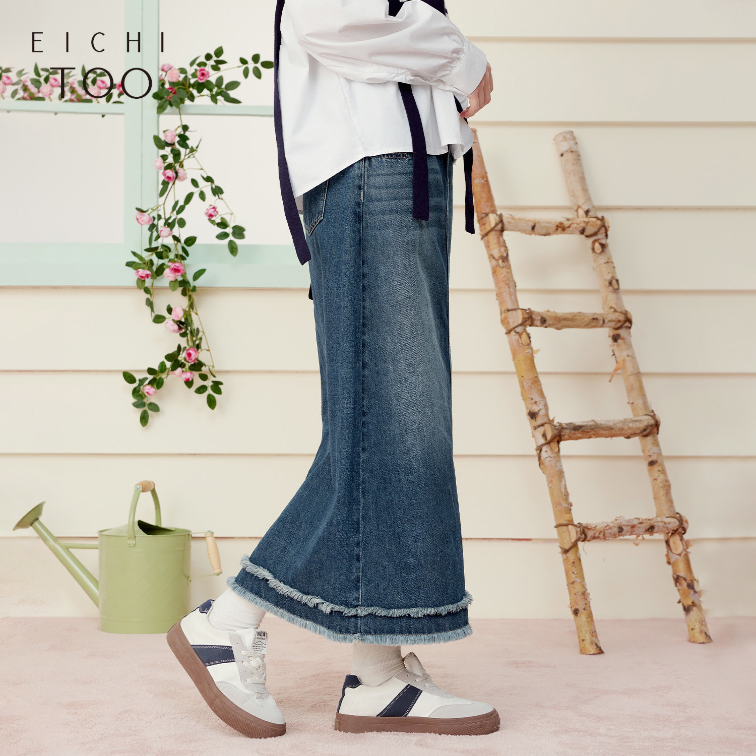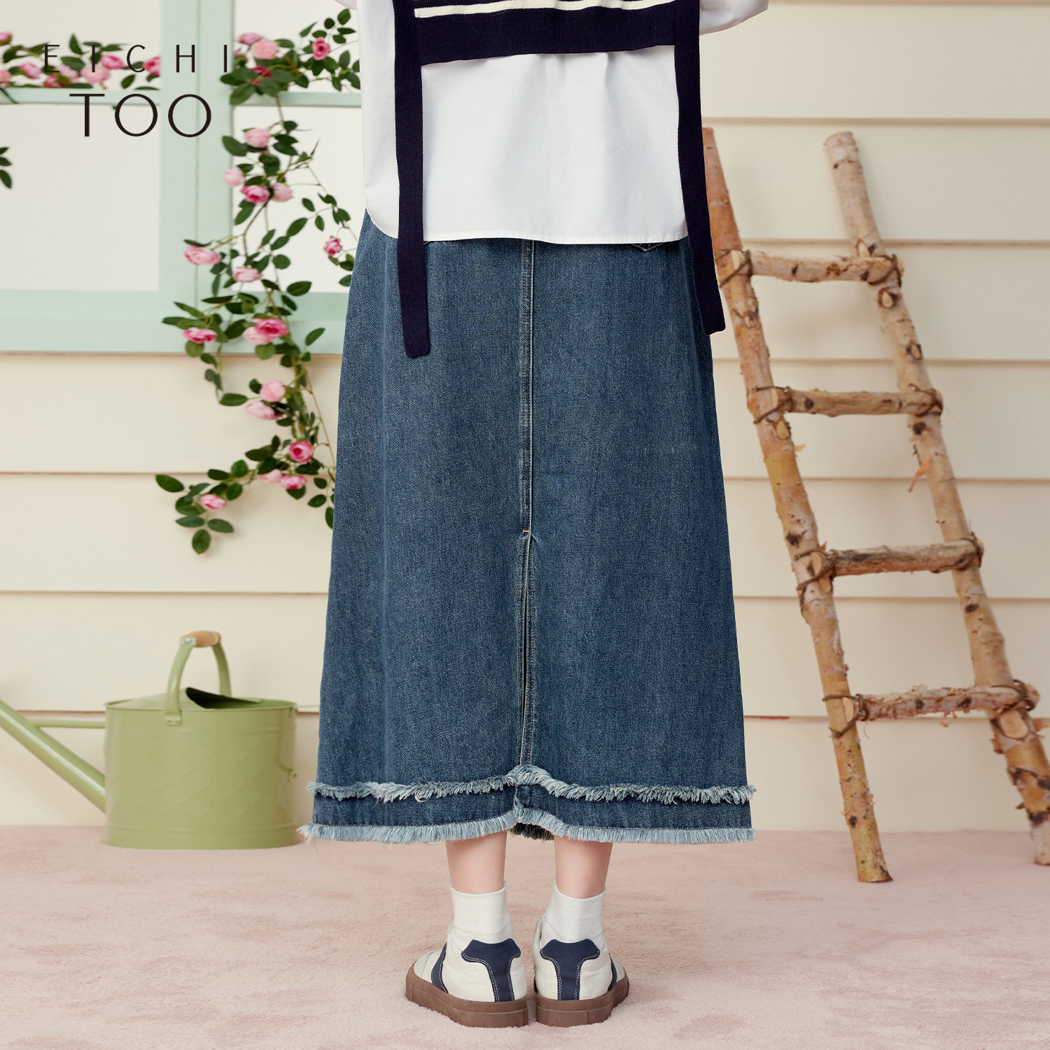爱居兔春季新款基础百搭时尚水洗牛仔A字裙半身裙