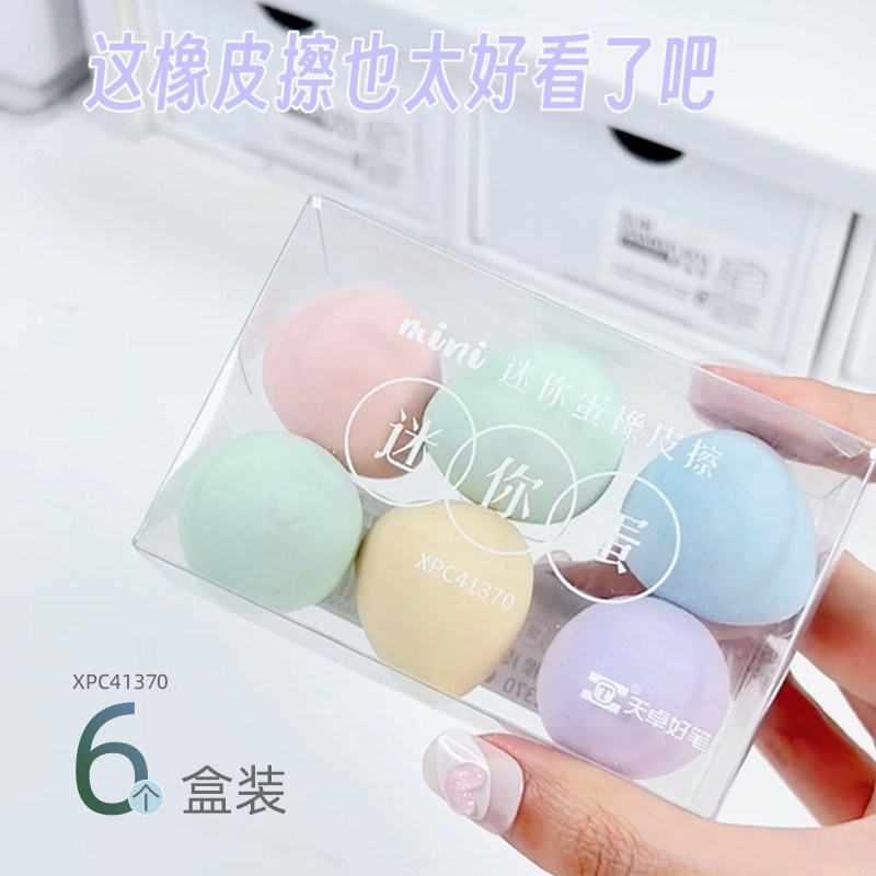 天卓新颖橡皮擦迷你蛋6个彩色卡通高颜值学生作业绘画擦干净像皮仿美妆蛋qq的外形很可爱椭圆象皮鸡蛋形文具