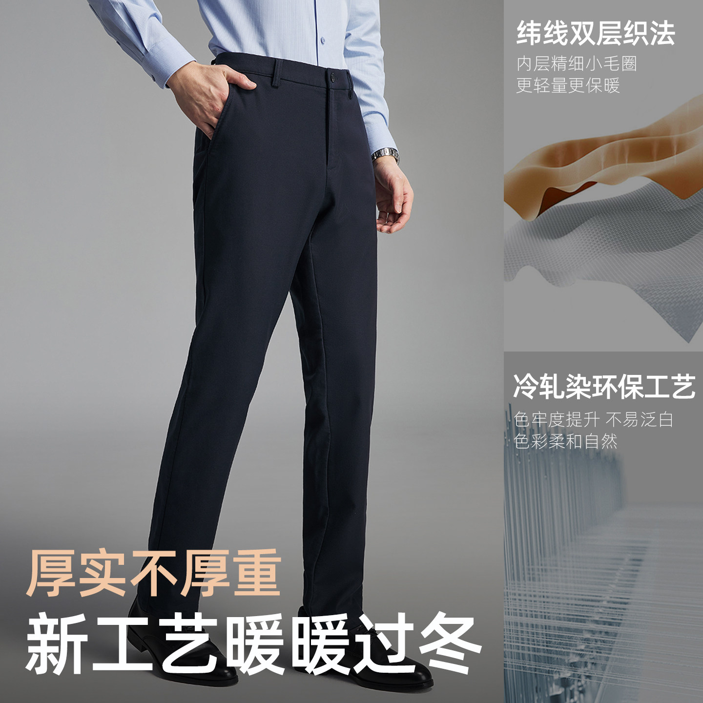 罗蒙加绒加厚男士休闲裤商务休闲秋冬季新款弹力直筒西裤秋冬款