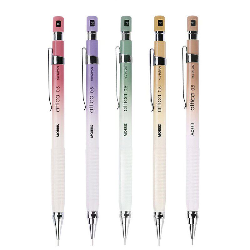 韩国MORRIS ATTICA渐变色涂装树脂笔杆0.5mm自动铅笔绘图书写防疲劳笔握铅芯硬度指示窗内置橡皮学生设计师
