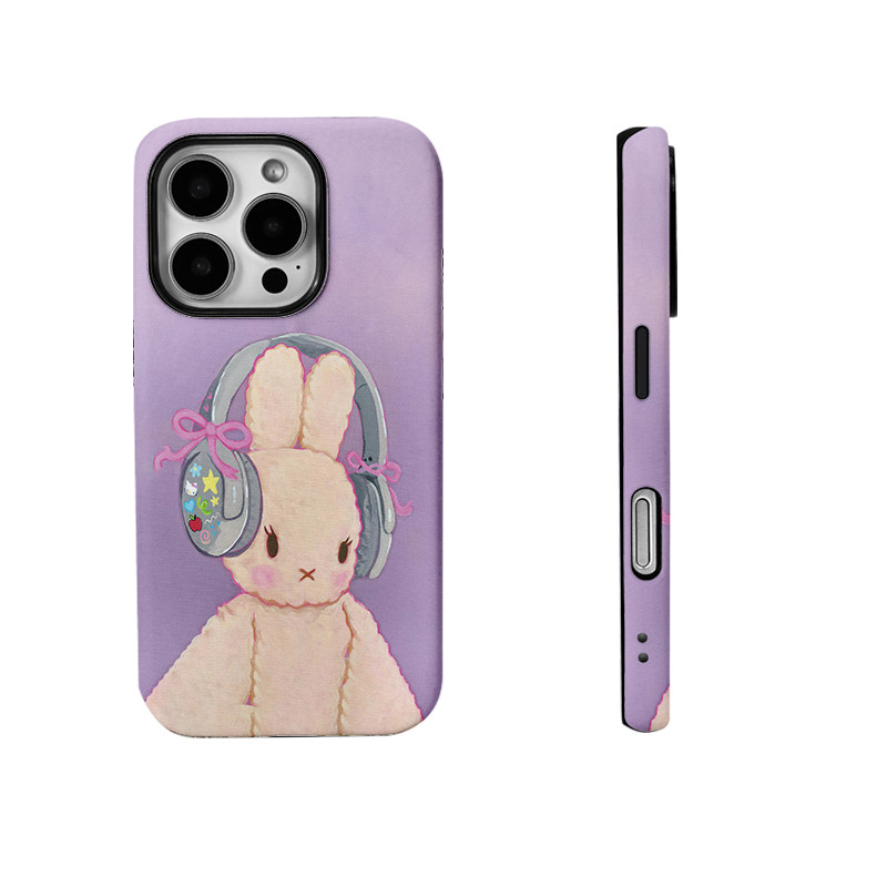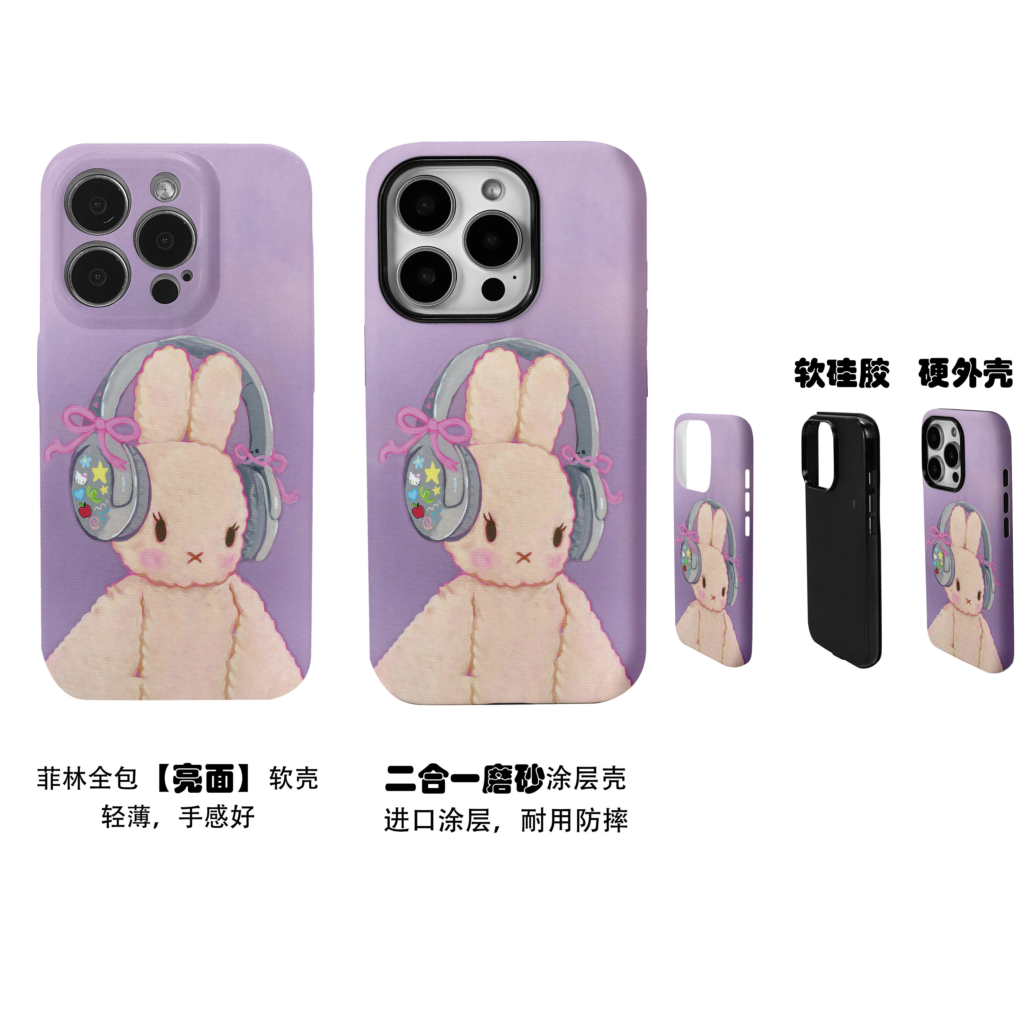 卡通可爱兔兔听音乐菲林二合一手机壳适用苹果17nova14华为p70mate60小米15opporen14ovivo荣耀300iPhone16