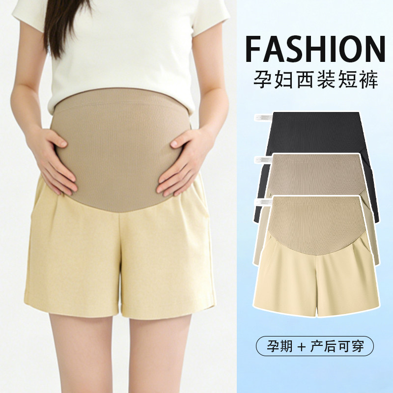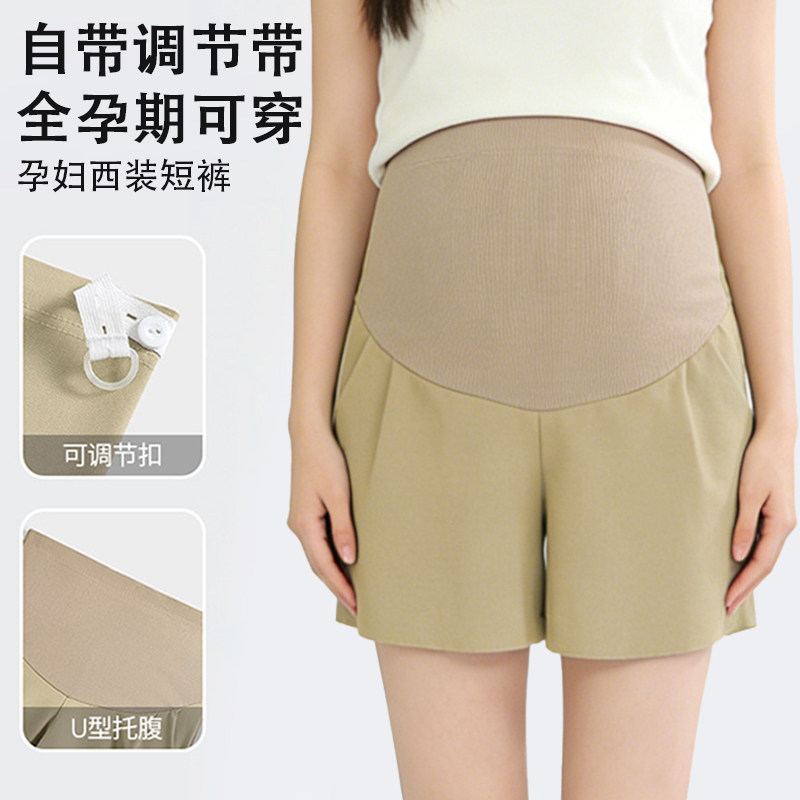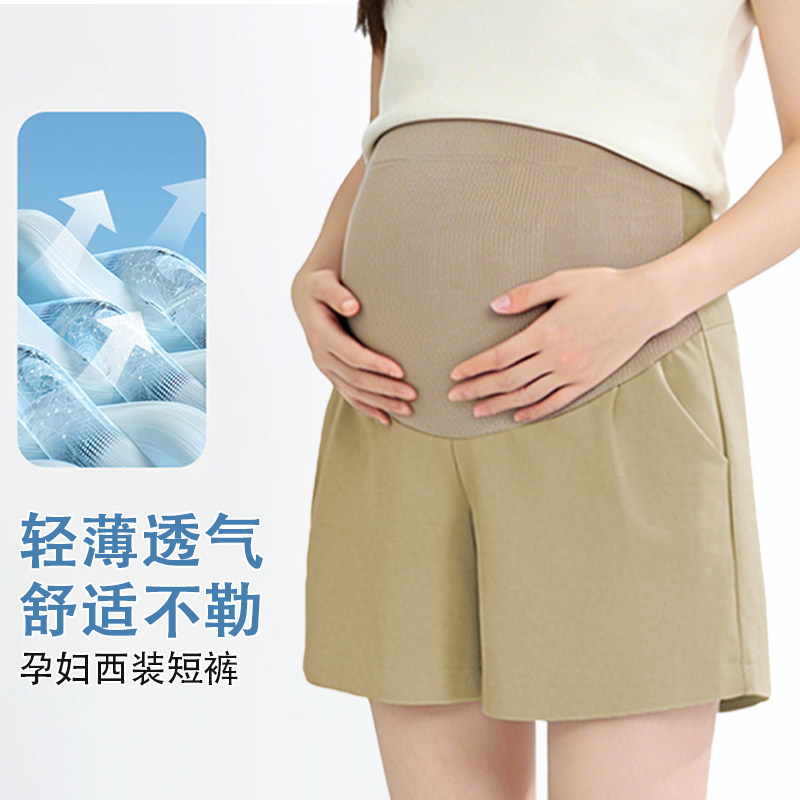 孕妇西装短裤夏季阔腿裤外穿薄款打底裤宽松休闲五分裤子托腹裤装