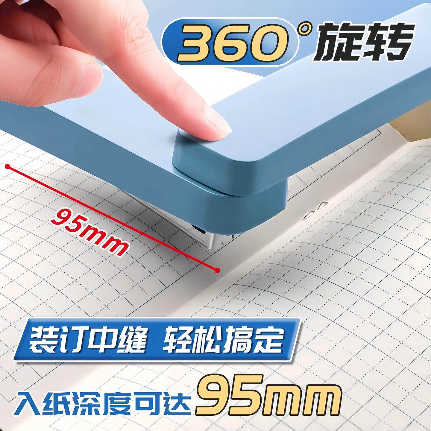 360度可旋转订书机学生用钉书中缝订书器办公用加厚家用型省力