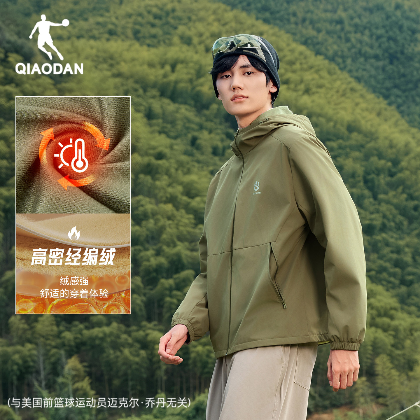 乔丹加绒休闲风衣外套男生2025冬季新款防风加绒连帽冲锋户外夹克