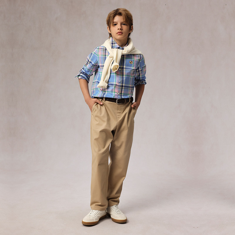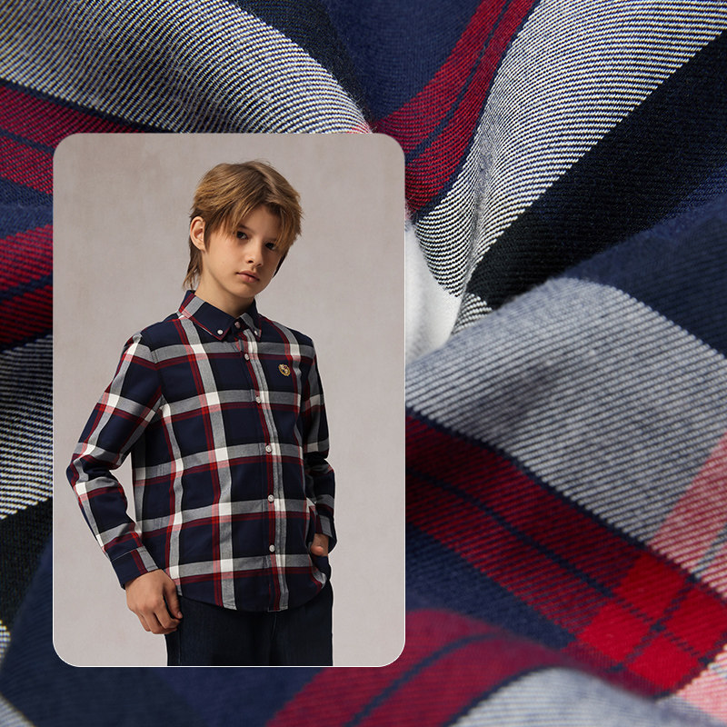 【100%棉】eland kids衣恋童装男童衬衫25年春秋季学院风格纹上衣
