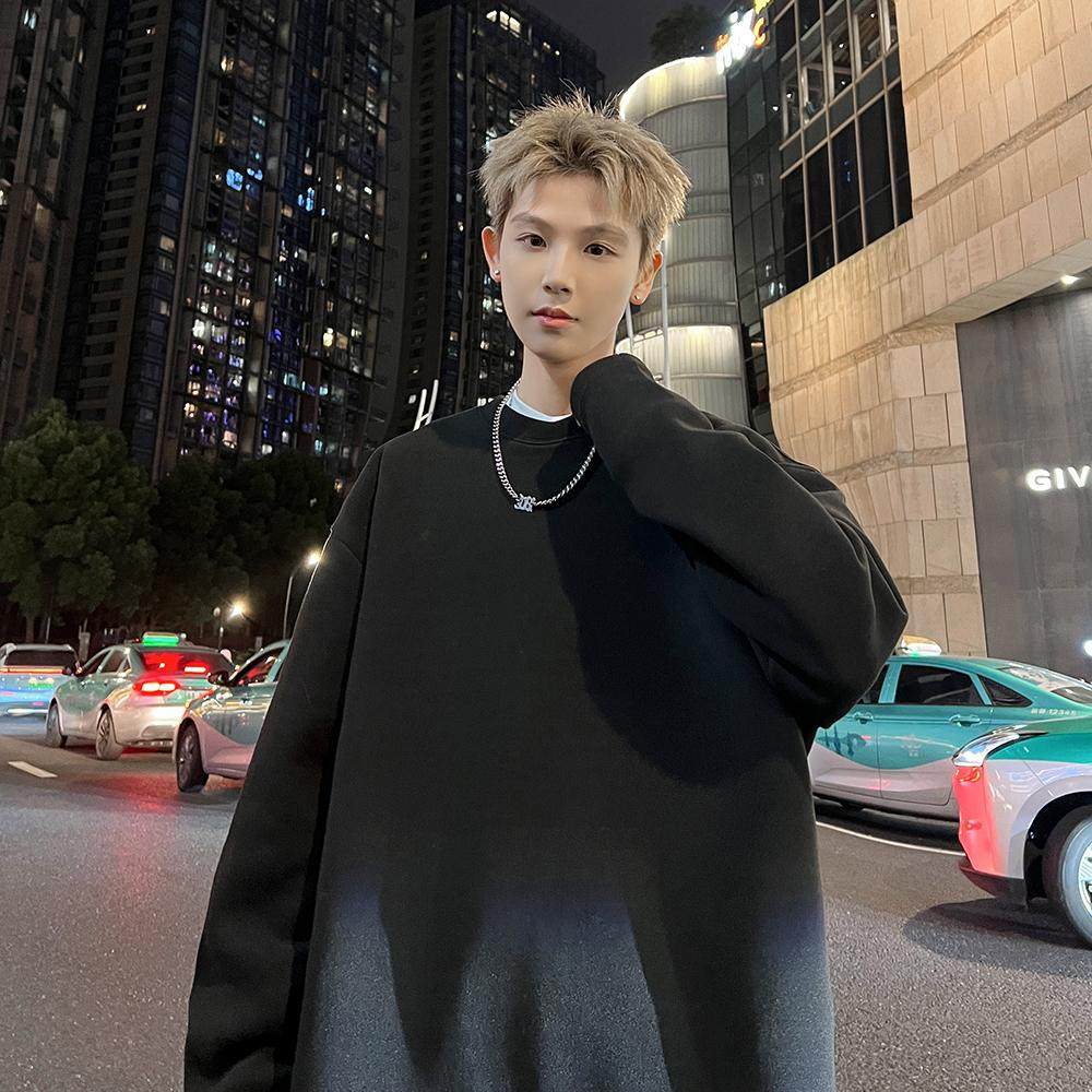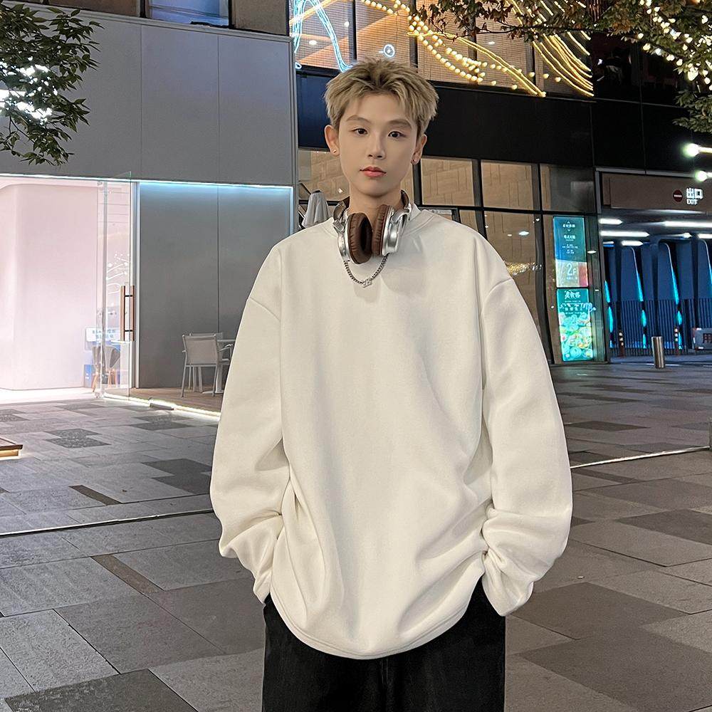 纯色圆领德绒打底衫男士秋冬季美式潮流宽松长袖t恤内搭休闲上衣
