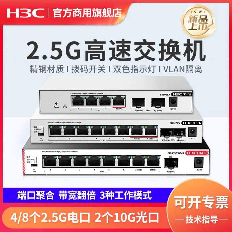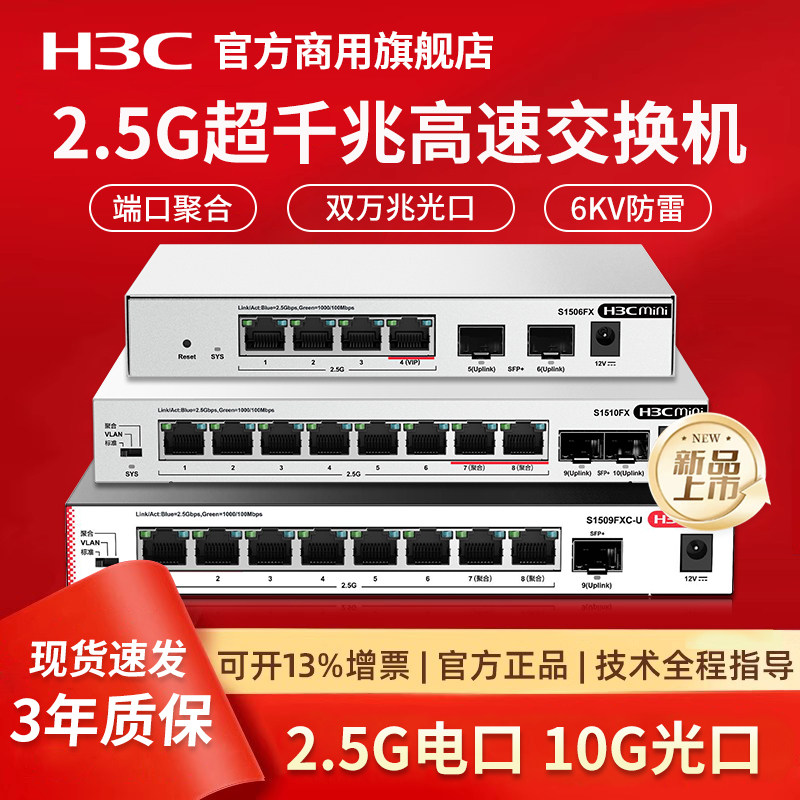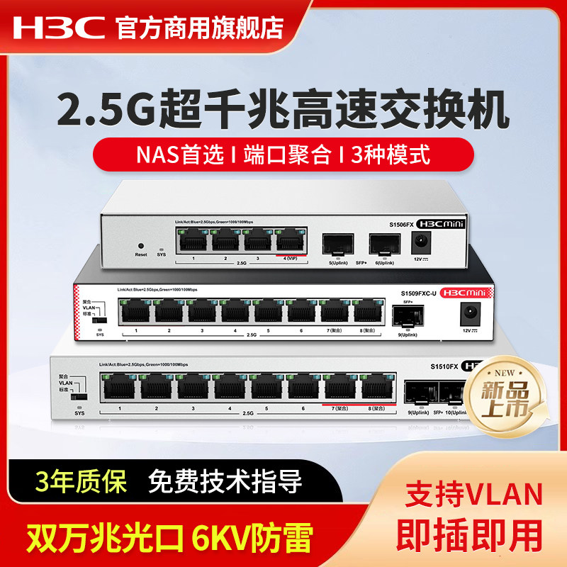 新华三h3c 交换机2.5G网络交换器即插即用万兆10G光口 S1510FX网络分线器S1506FX分流器