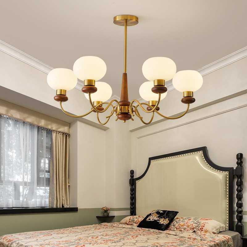 中古风美式吊灯胡桃木色客厅主灯乡村复古实木玻璃餐厅卧室灯具