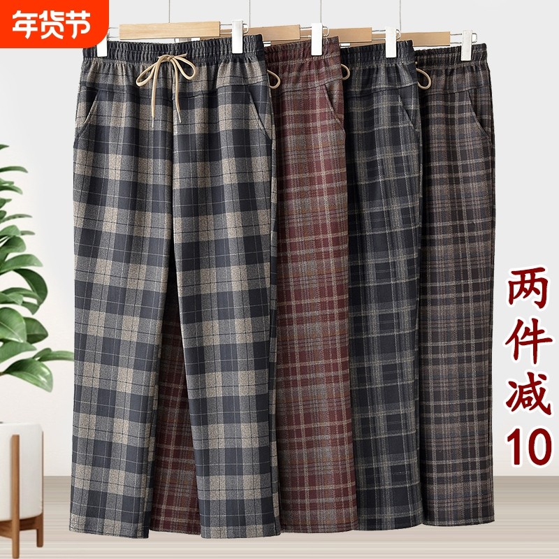 妈妈秋冬裤子女洋气格子中老年女裤加绒加厚高腰休闲时尚直筒裤冬