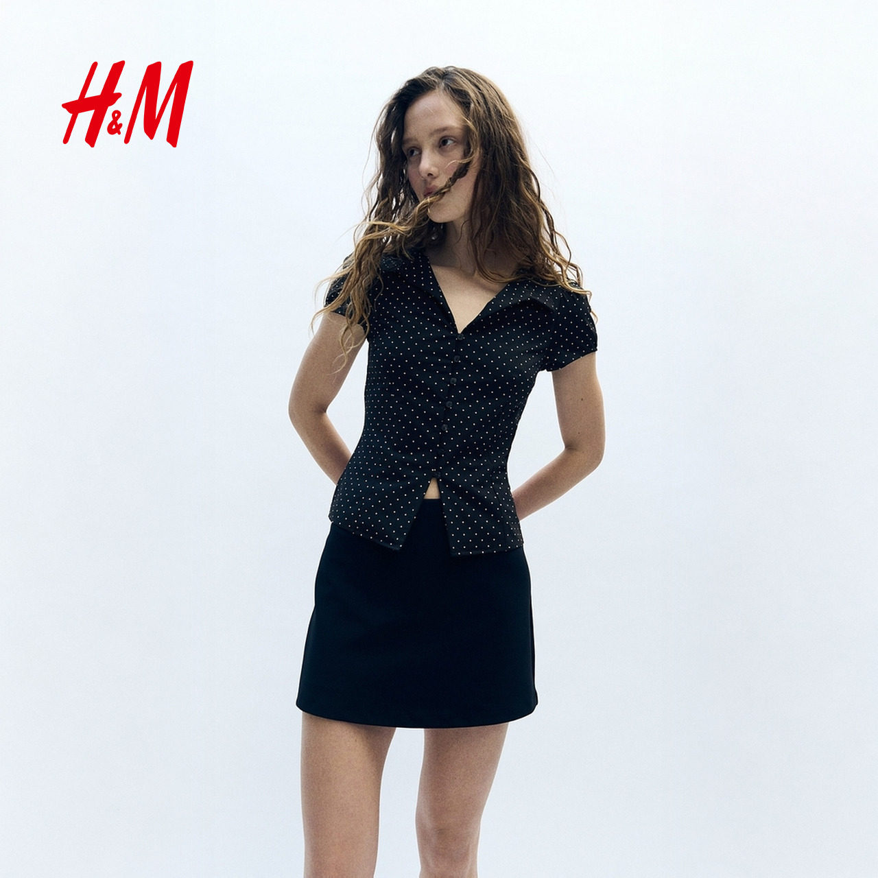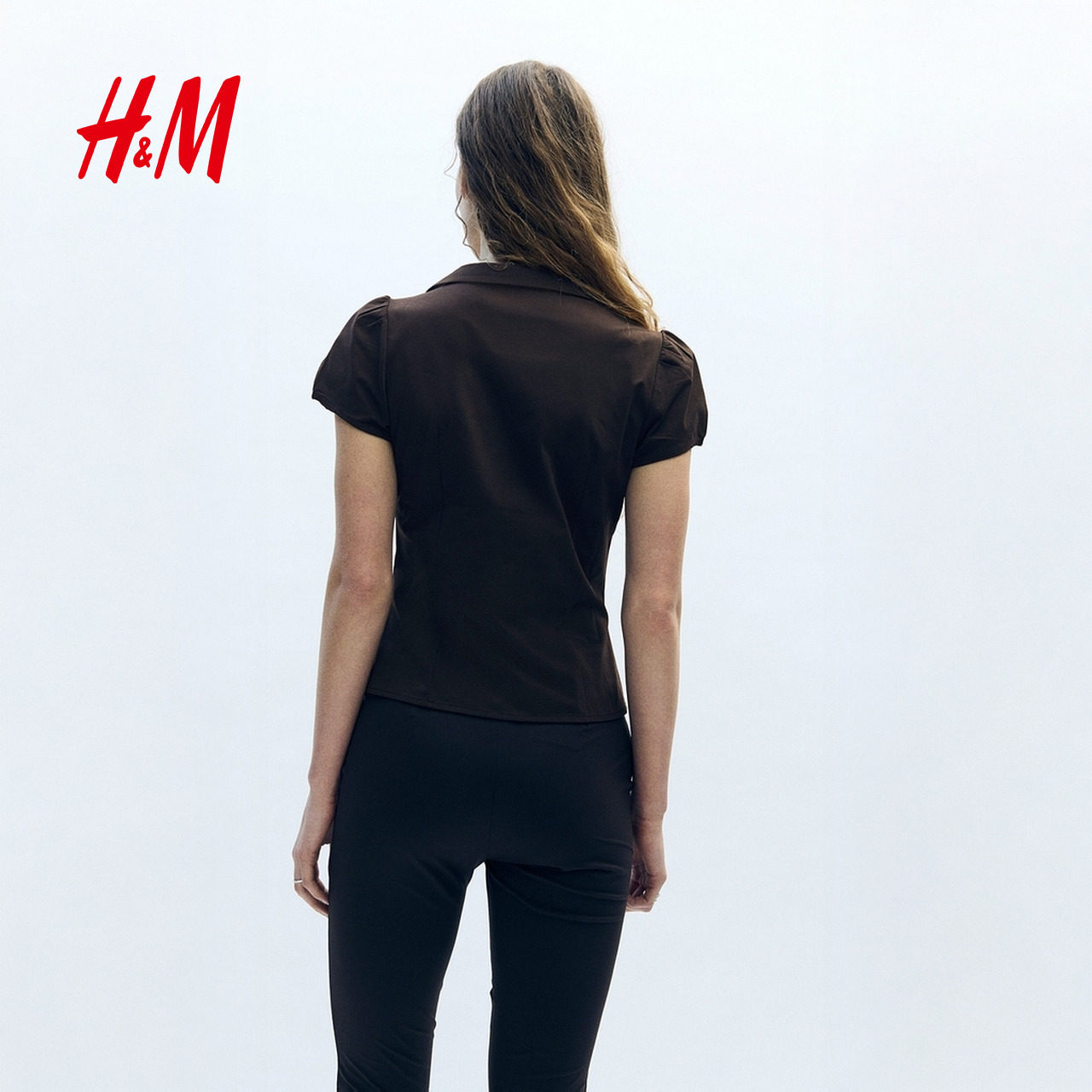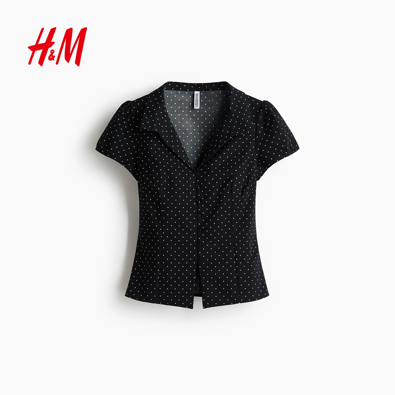 HM女装T恤2026春季新款修身设计感纽扣前襟有领上衣短袖1316907