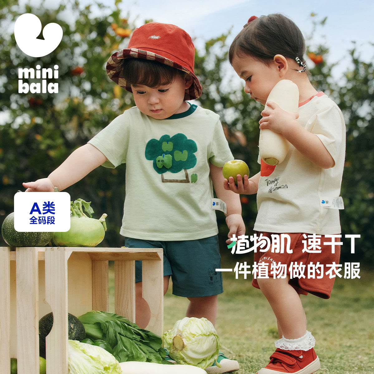 迷你巴拉巴拉男女童短袖T恤防蚊裤儿童裤子宝宝婴儿上衣速干t长裤