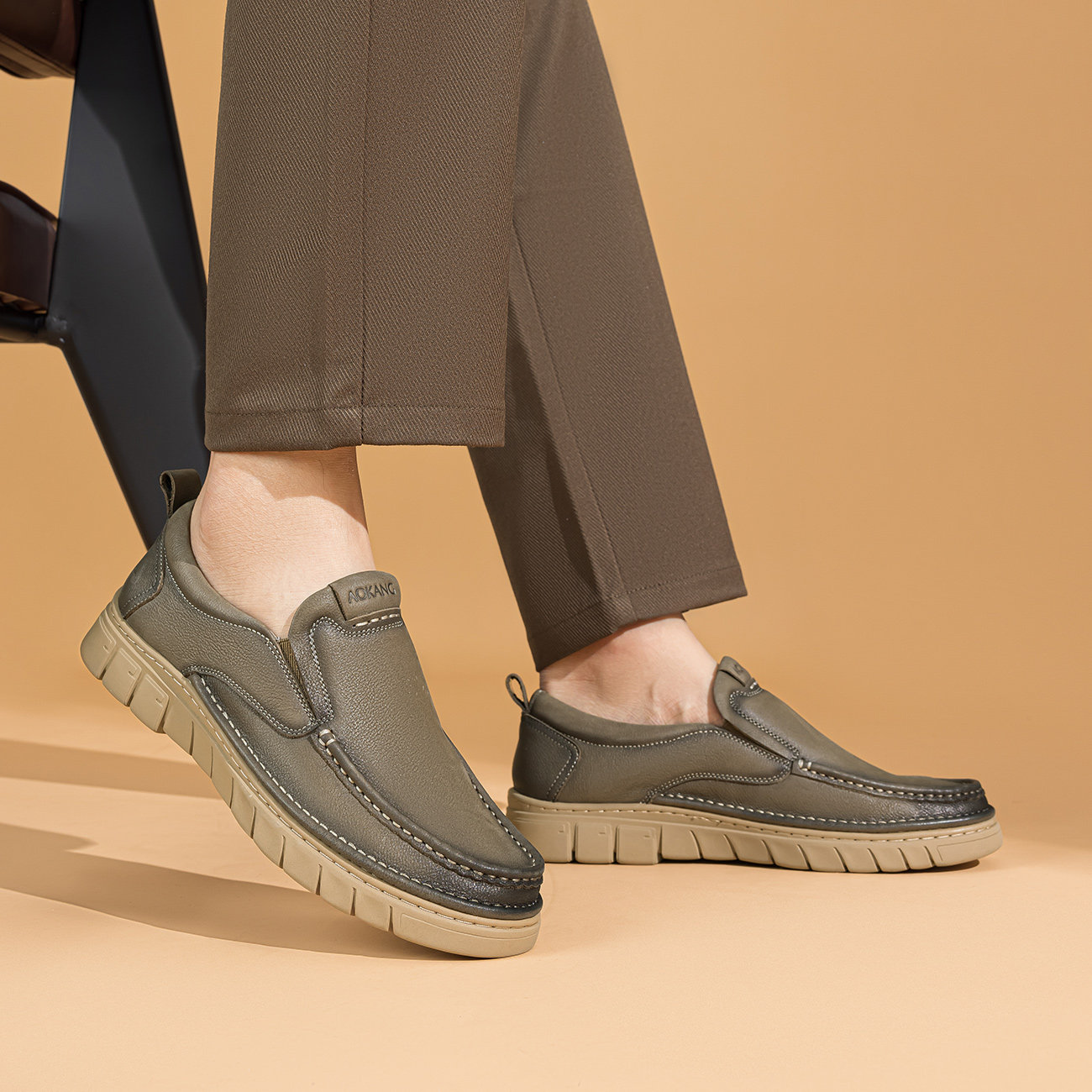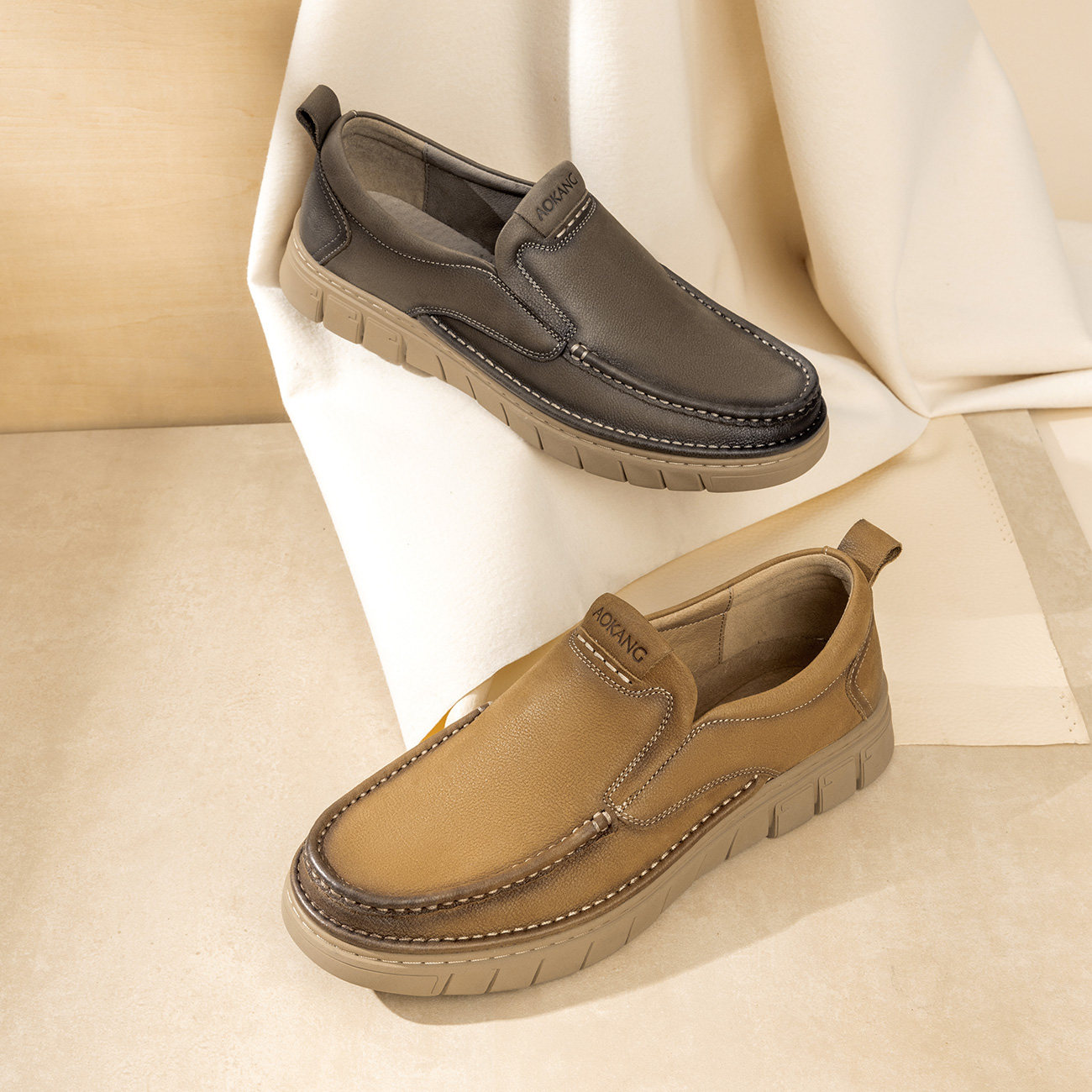 奥康男鞋 春秋商务休闲皮鞋舒适软底驾车鞋一脚蹬套脚懒人豆豆鞋