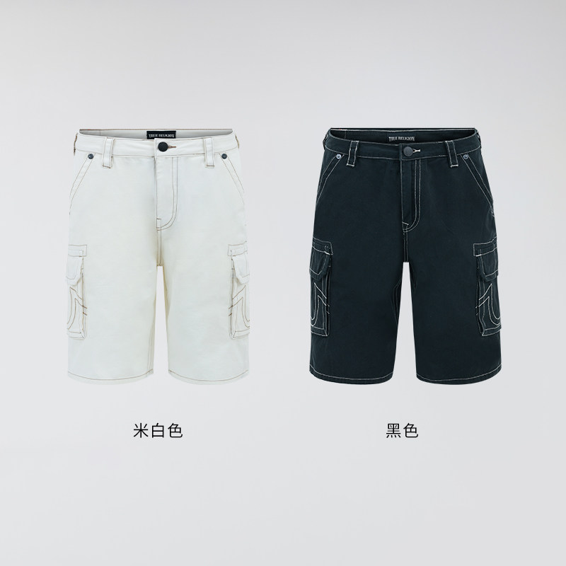 TrueReligion春夏男纯色经典美式休闲休闲短裤