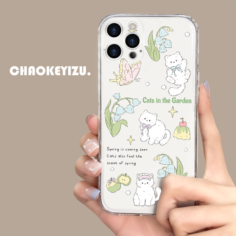 适用于苹果15promax手机壳16plus可爱猫咪iPhone17透明14/13pro软硅胶12mini防摔11全包7/8p薄6sp女se3卡通xr