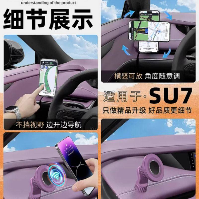 适用于小米SU7/YU7手机支架磁吸款无线充车载导航防抖内饰用品