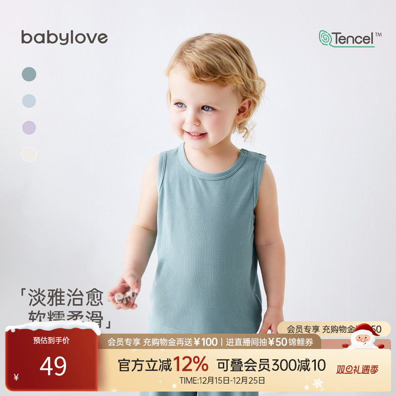 babylove婴幼儿背心夏季薄款天丝莫代尔男女宝宝无袖t恤清凉上衣