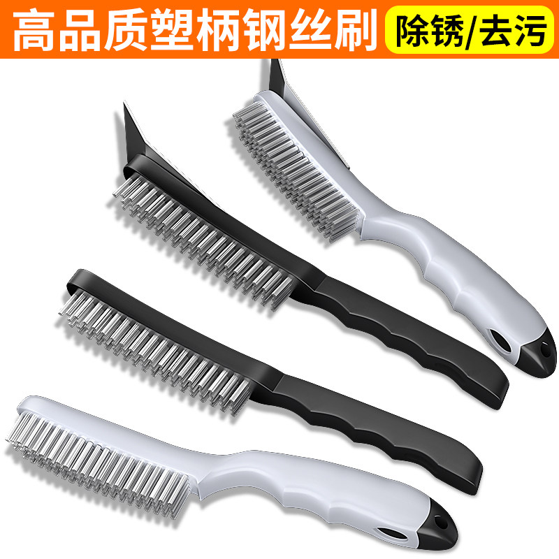 钢丝刷带柄刀刷不锈钢丝刀刷镀铜丝刷除锈塑料柄烧烤铁刷子清洁刷
