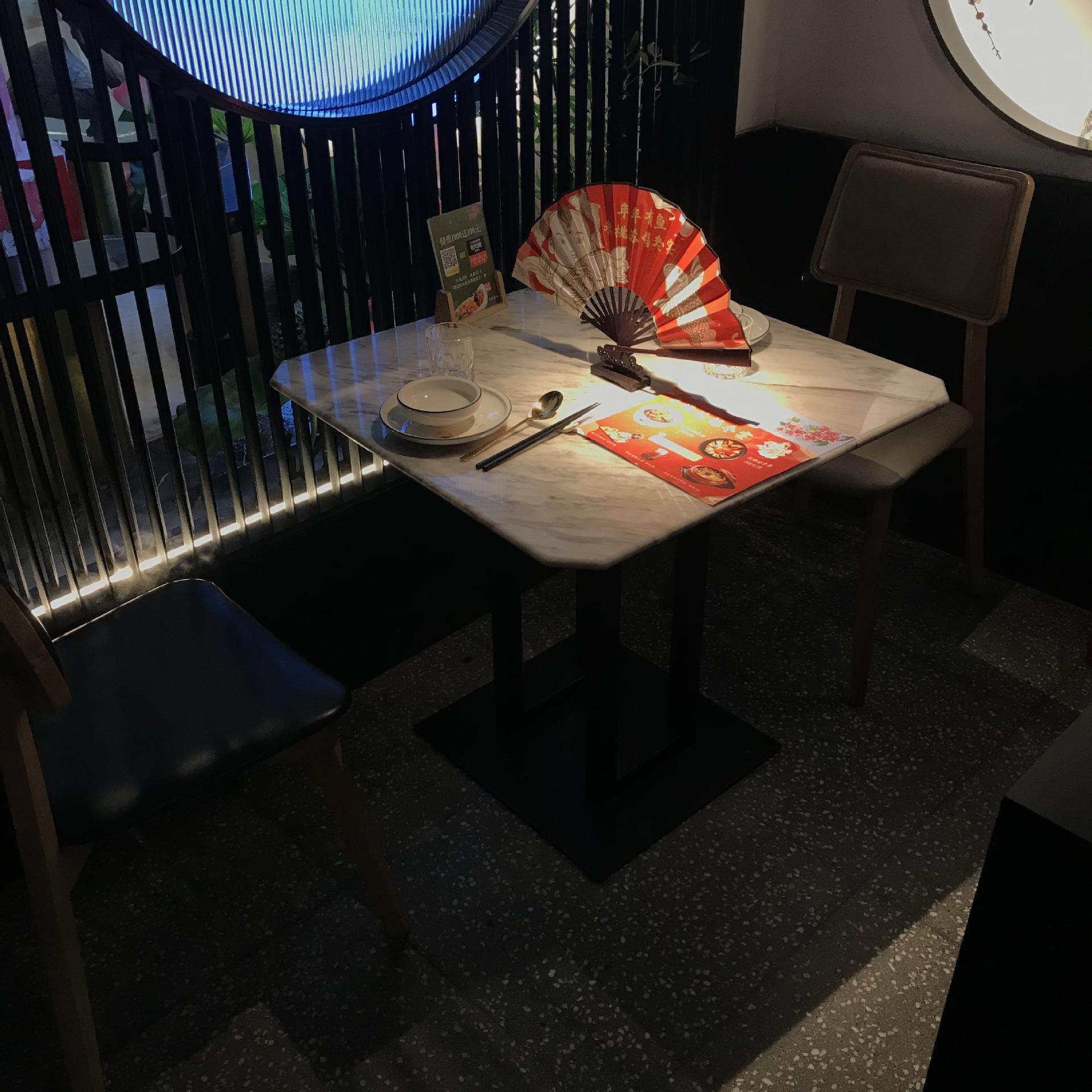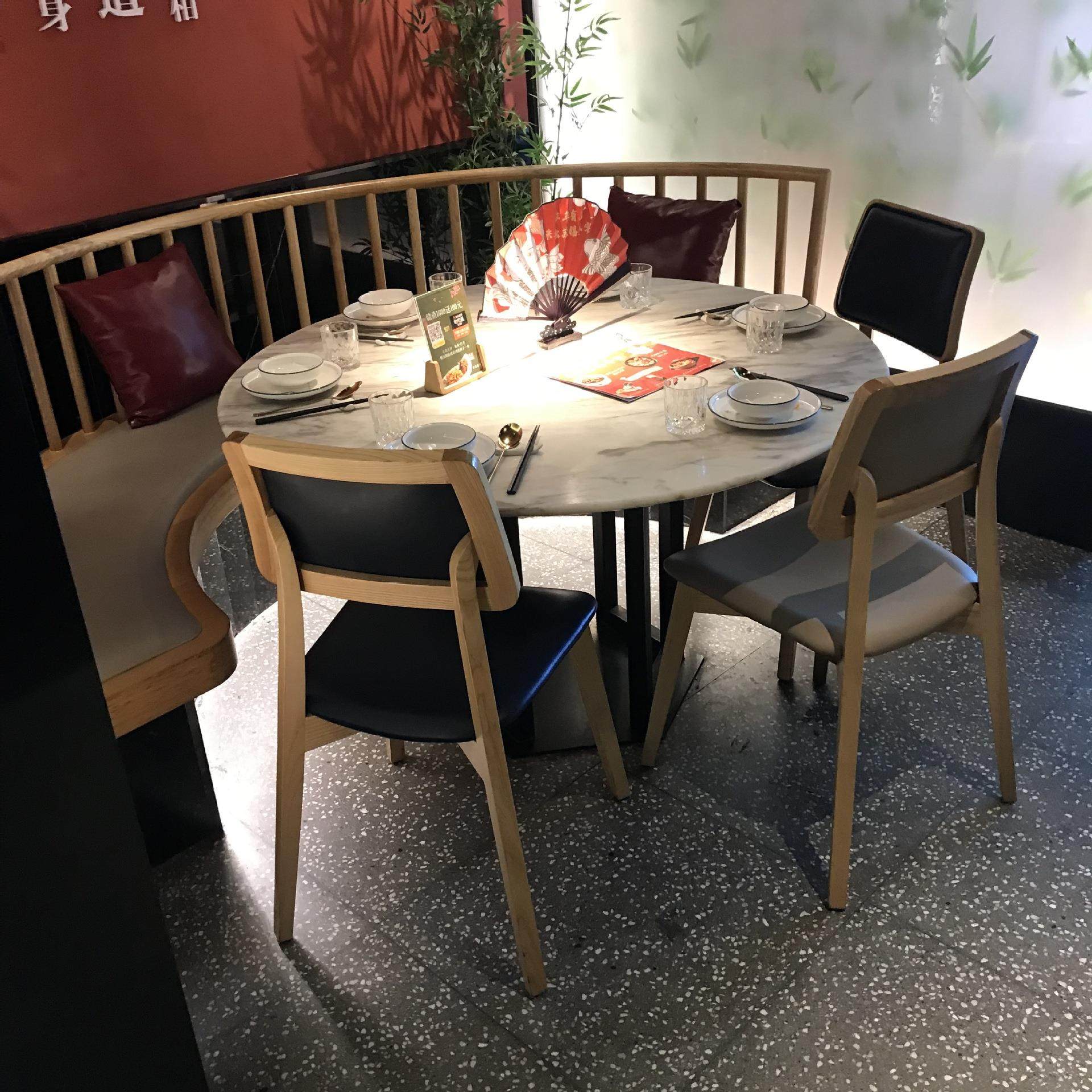 中式复古徽派餐桌桂满陇青花瓷大理石实木桌椅饭店主题餐厅卡座