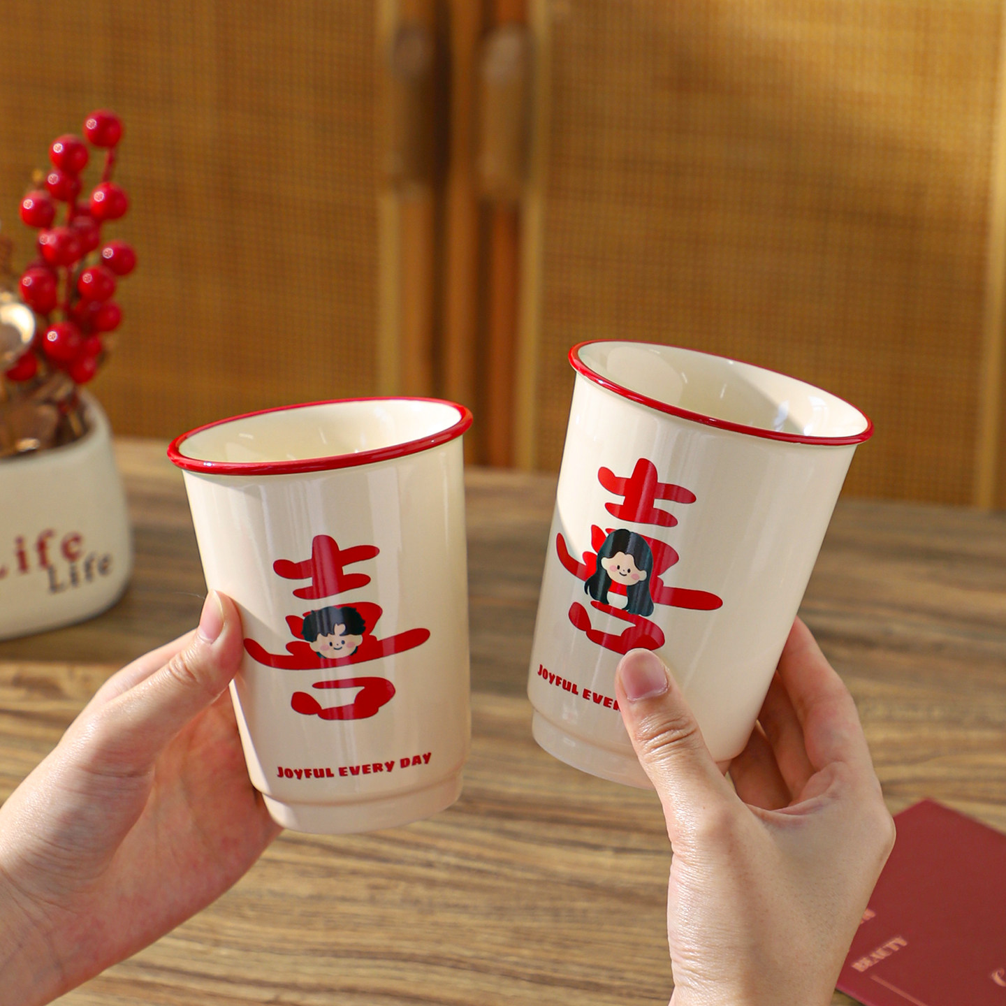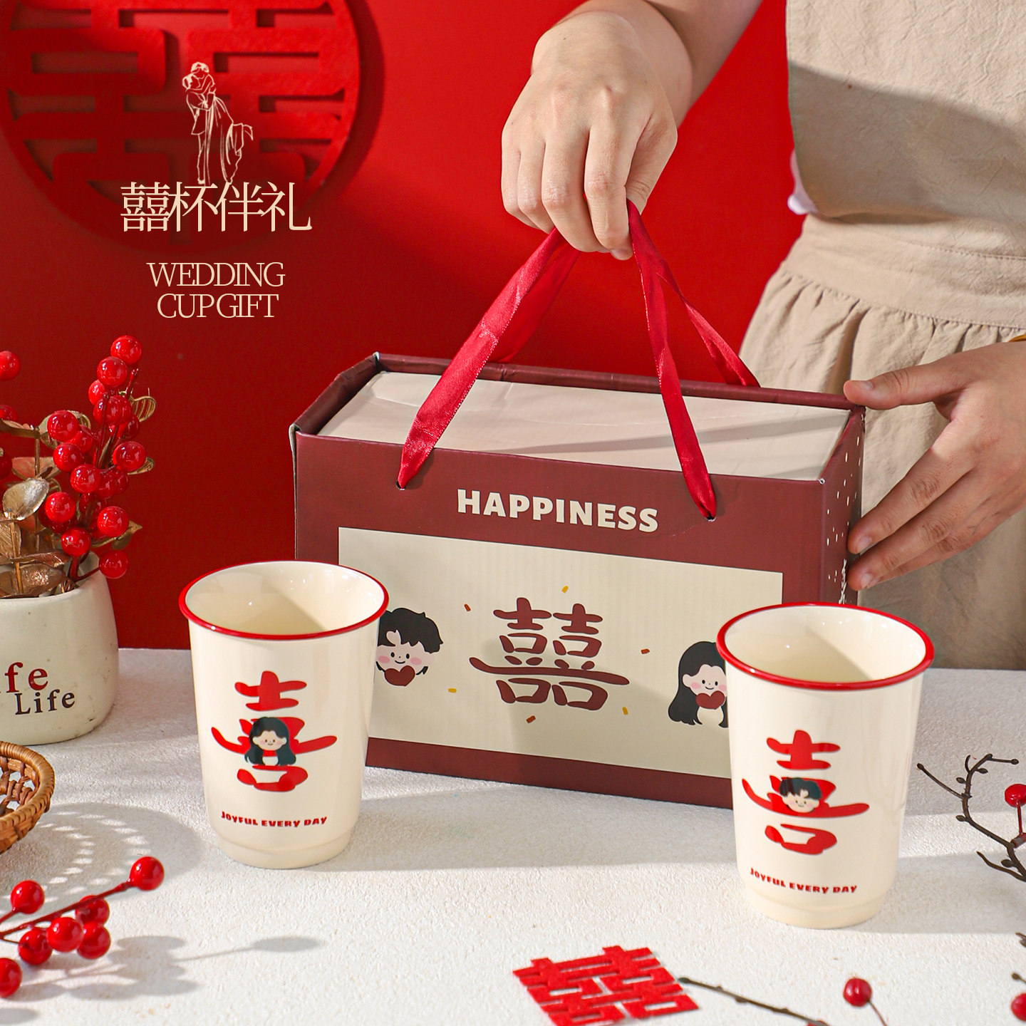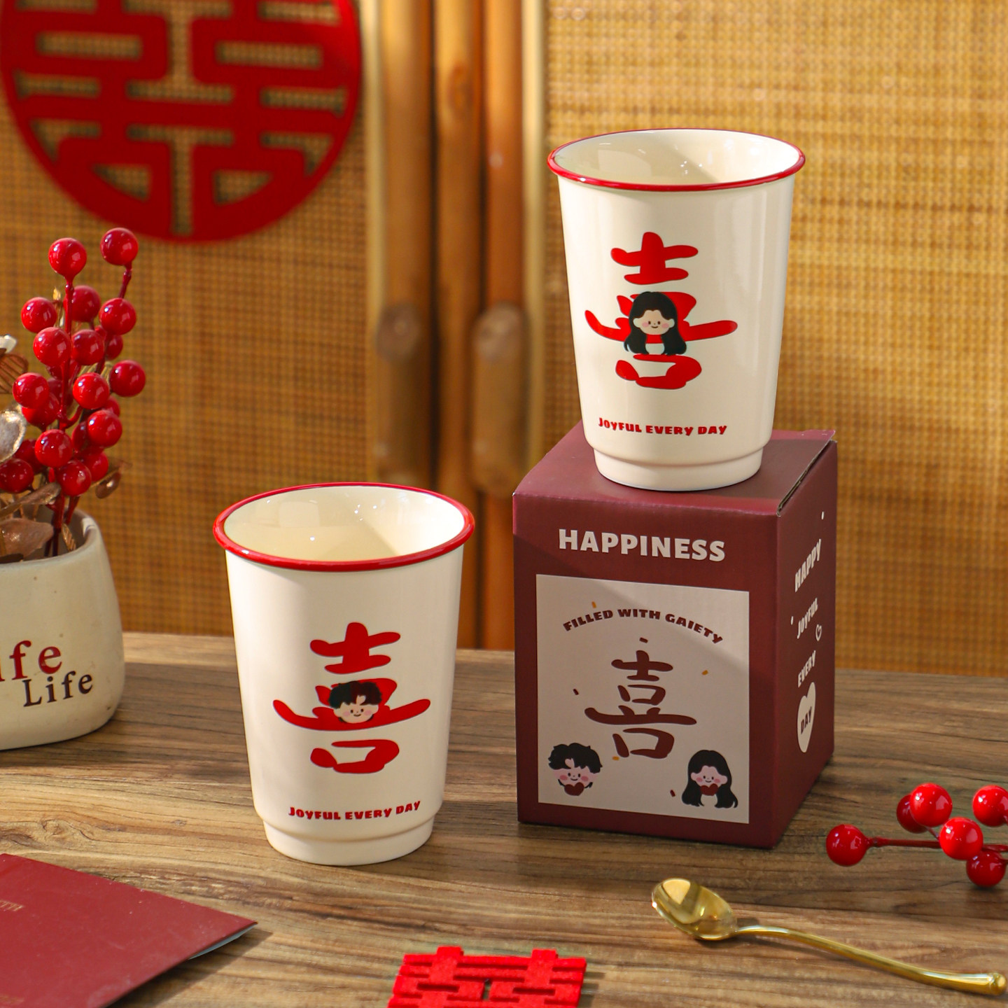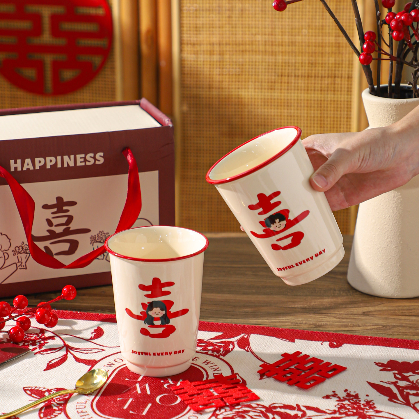 舍里喜庆陶瓷马克杯情侣对杯喝水杯礼盒装创意新婚订婚礼物伴手礼