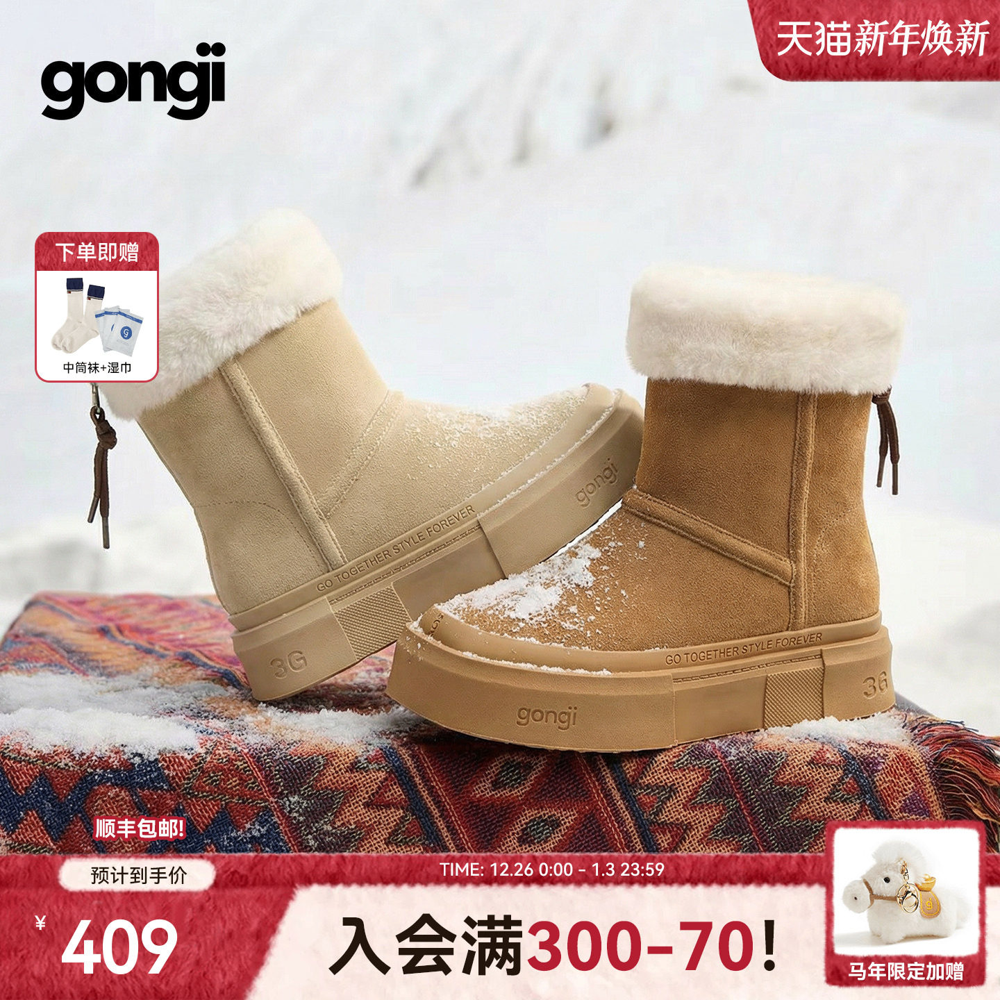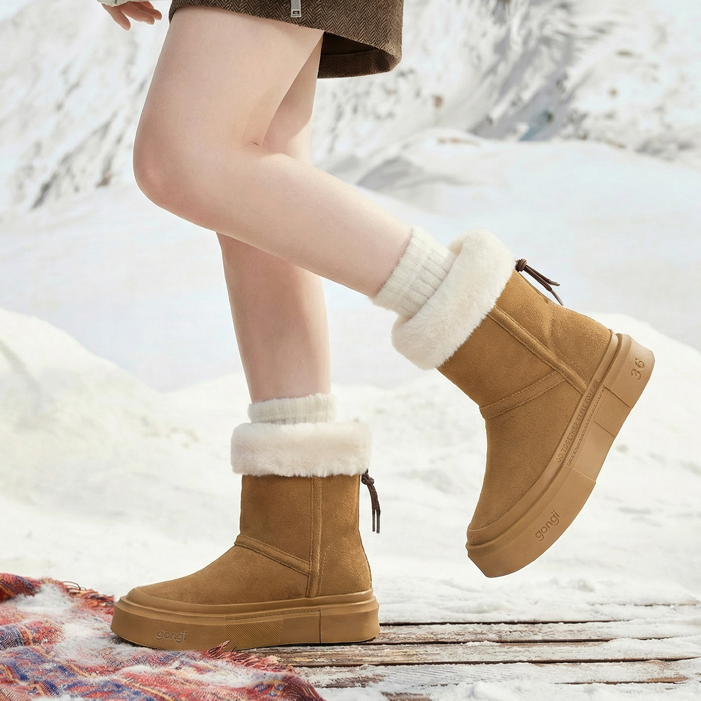 GONGJI厚底雪地靴女2025新款冬外穿加绒加厚保暖鞋子增高防滑棉鞋