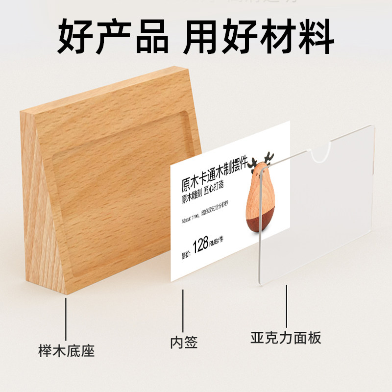 木质价签牌实木标价签台签斜面标签牌家具茶叶红酒价签牌促销商品价格展示牌小亚克力展示牌台卡架POP广告牌