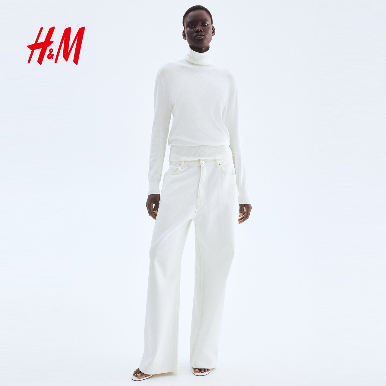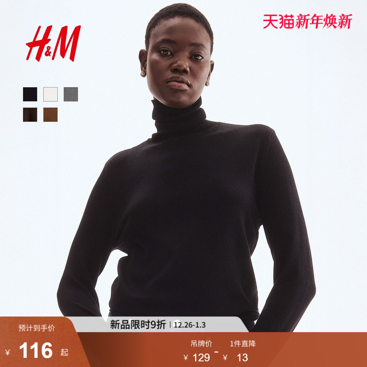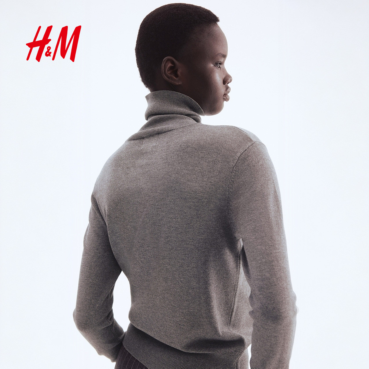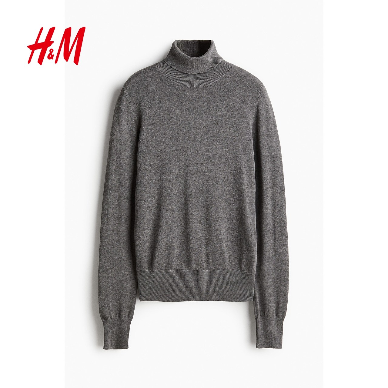 HM女装毛针织衫2025冬季新款简约罗纹圆高领打底毛衣套衫1176748