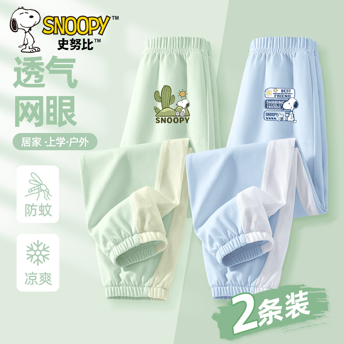 史努比男童防蚊裤夏薄款童装长裤透气网眼男大童速干儿童夏装裤子