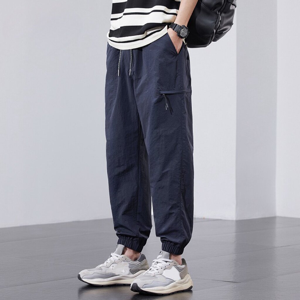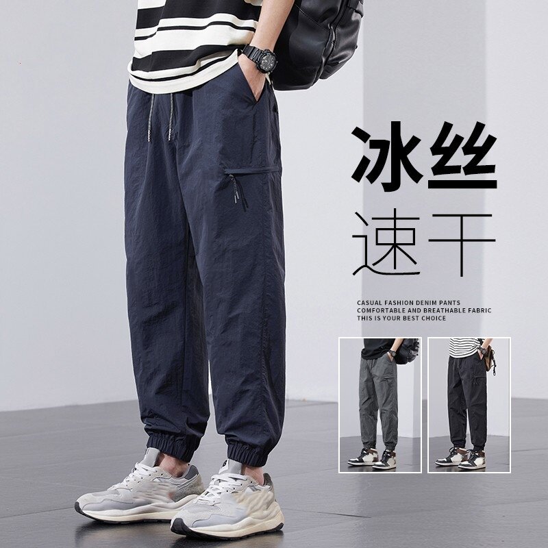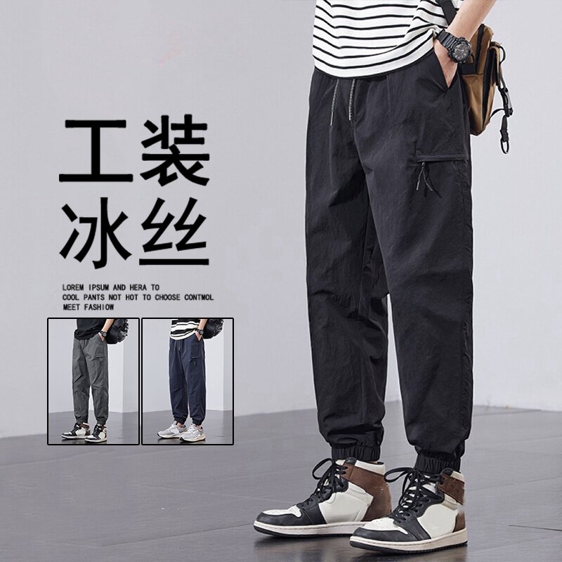 美式冰丝工装裤子男夏季青少年速干运动裤男士夏装薄款束脚休闲裤