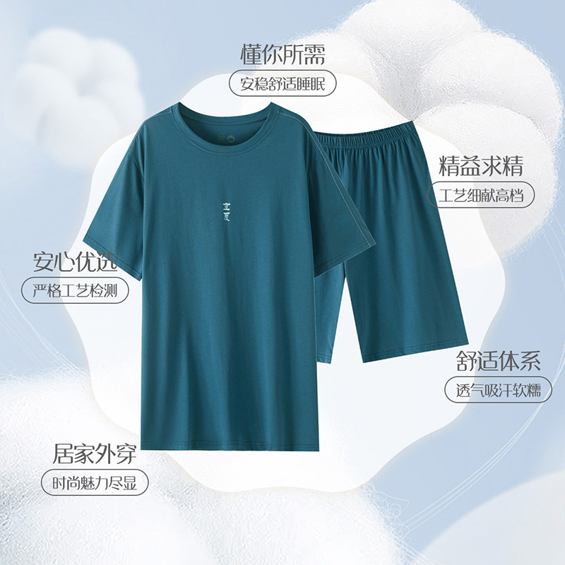 浪莎2025年新款睡衣男士夏季纯棉短袖长裤家居服男款夏天夏款套装