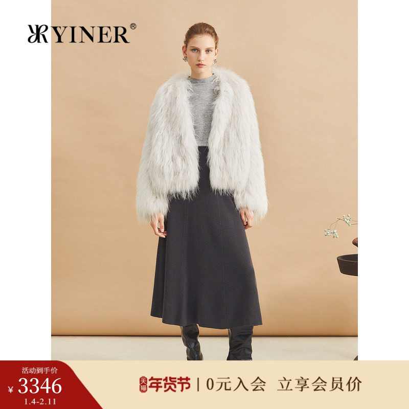 YINER音儿冬季法式优雅貉子毛皮短款正肩真皮皮草