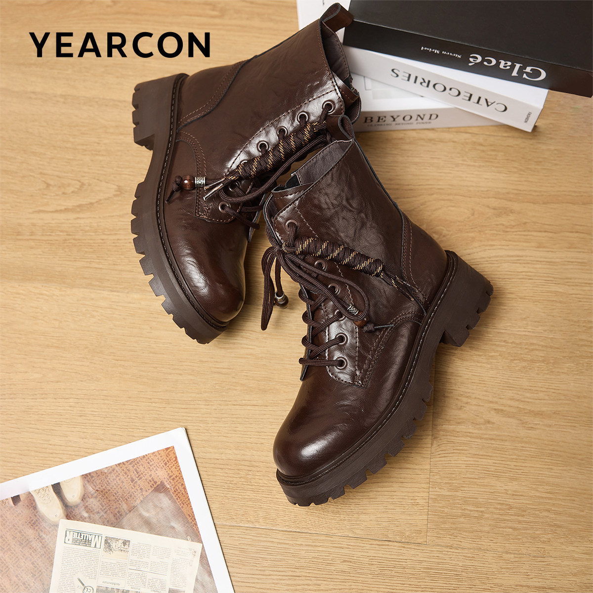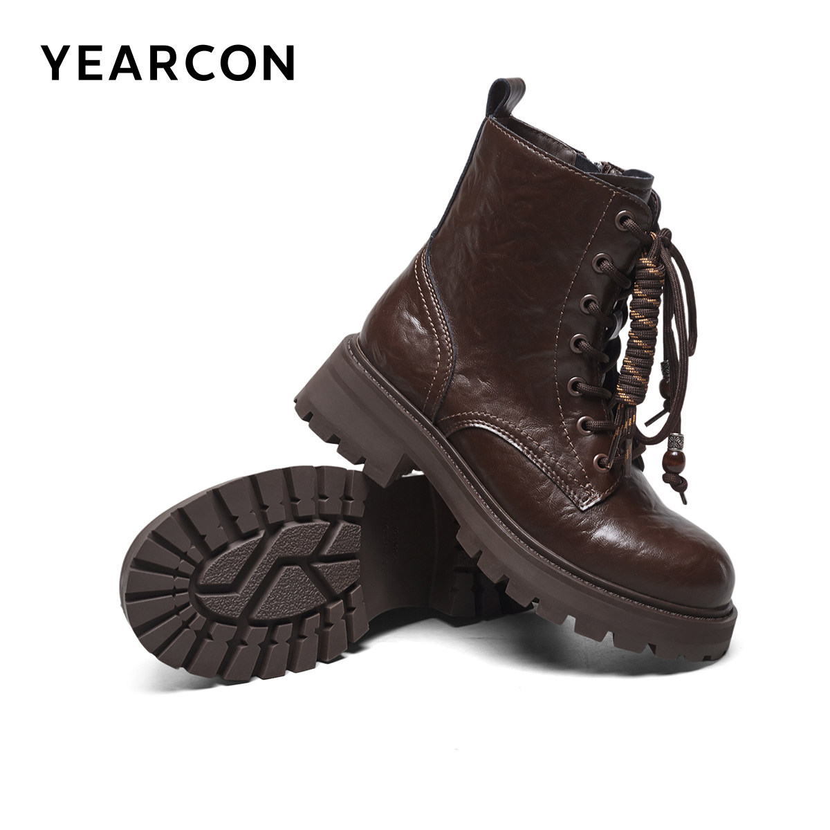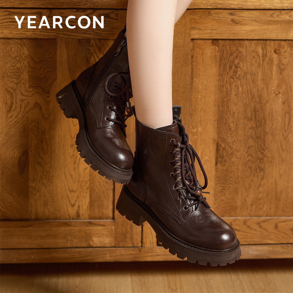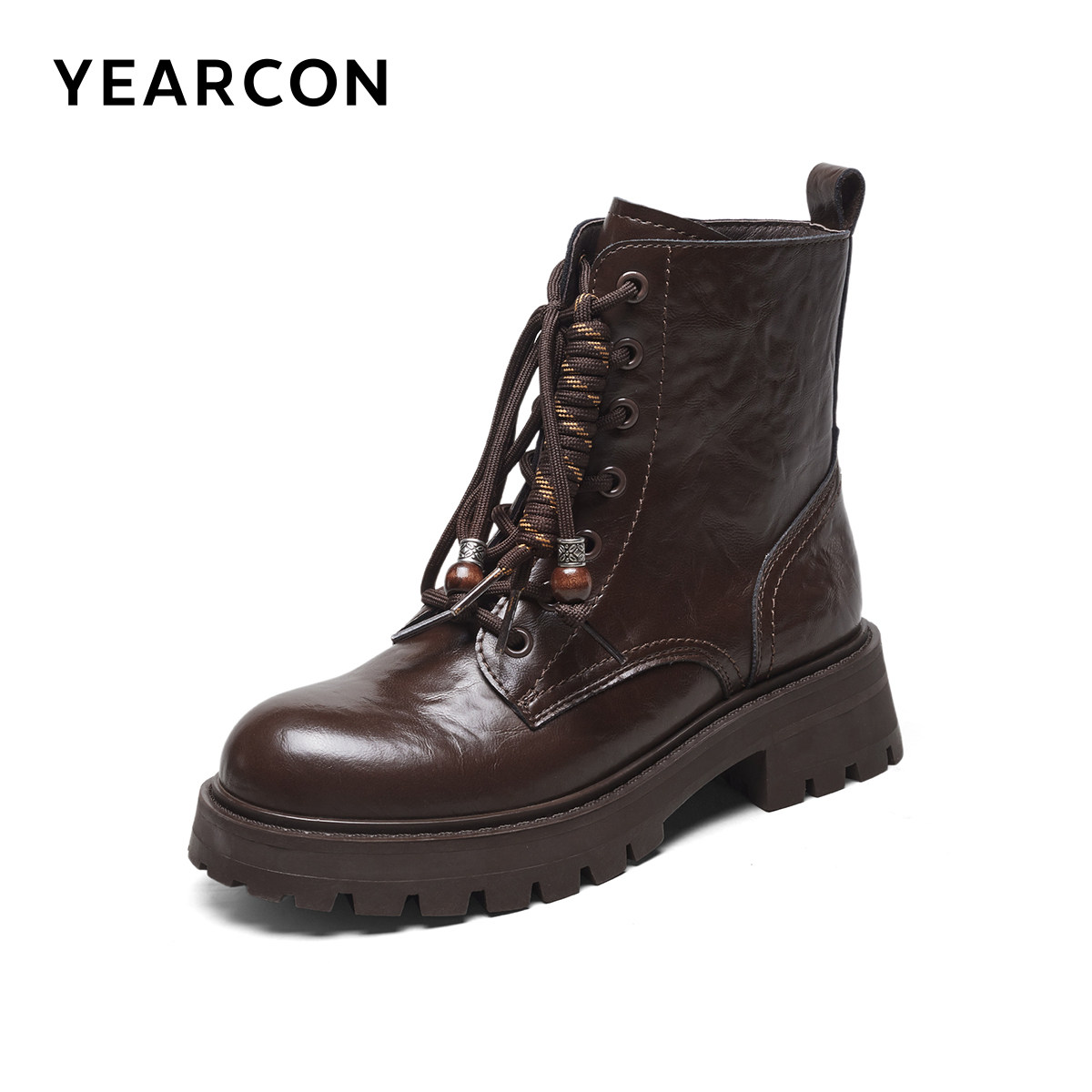 意尔康女鞋2025冬季皮鞋复古户外休闲马丁靴粗跟英伦短靴女士单靴
