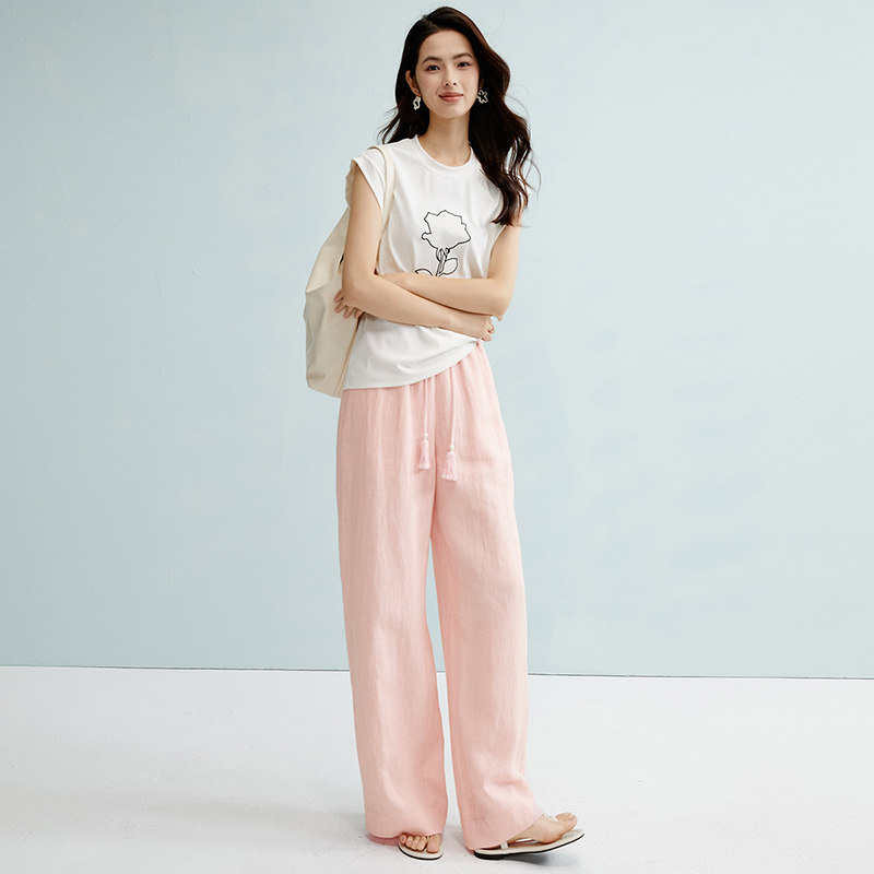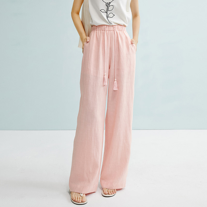 晚白【断码清仓】2026春季裤子莱赛尔亚麻极简阔腿裤女