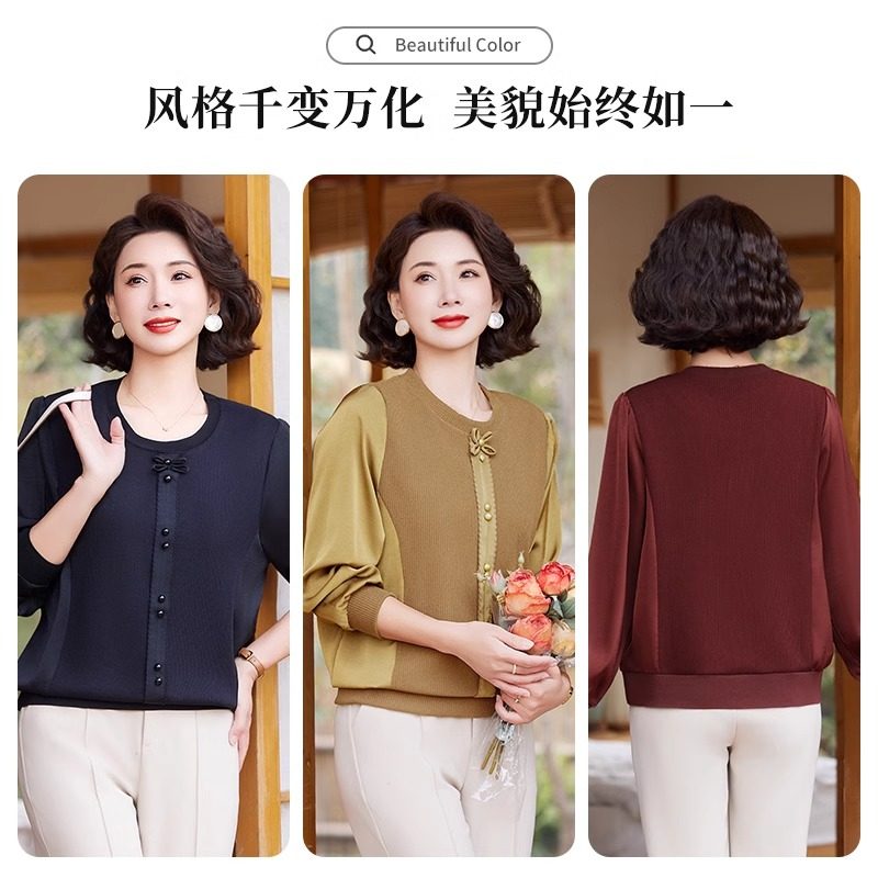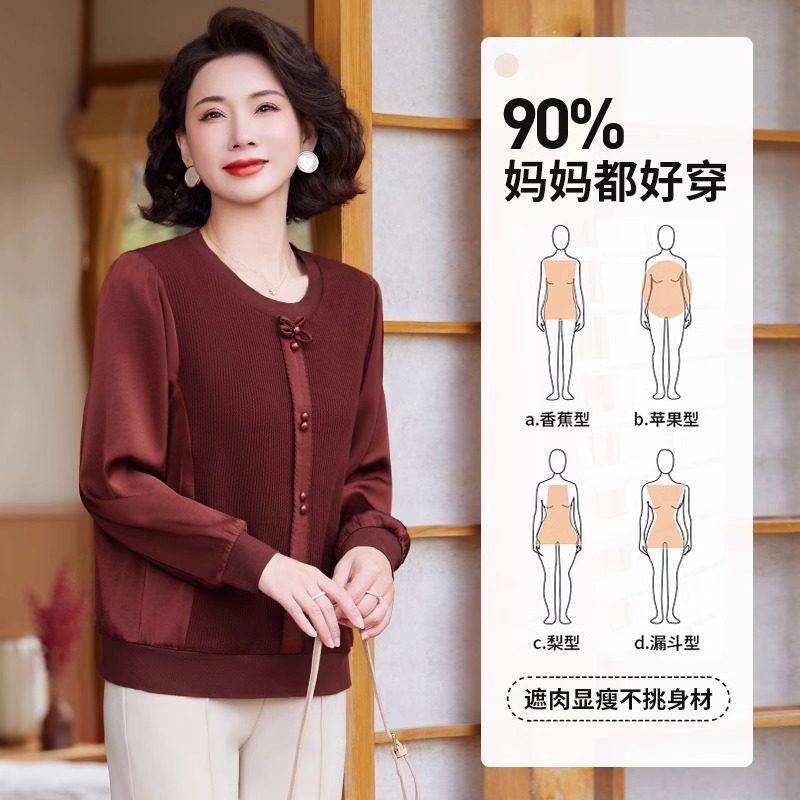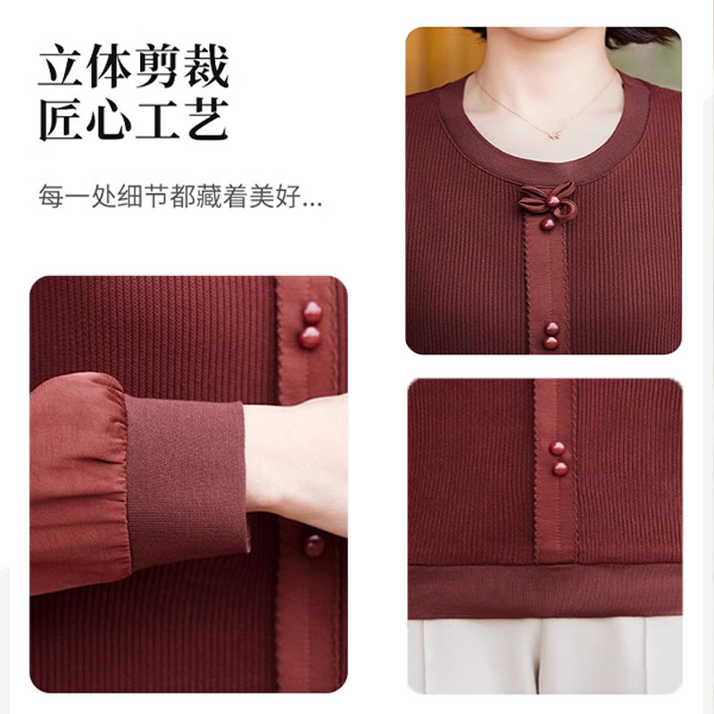 妈妈小衫春秋时尚洋气长袖T恤2025新款中老年女春装针织打底上衣