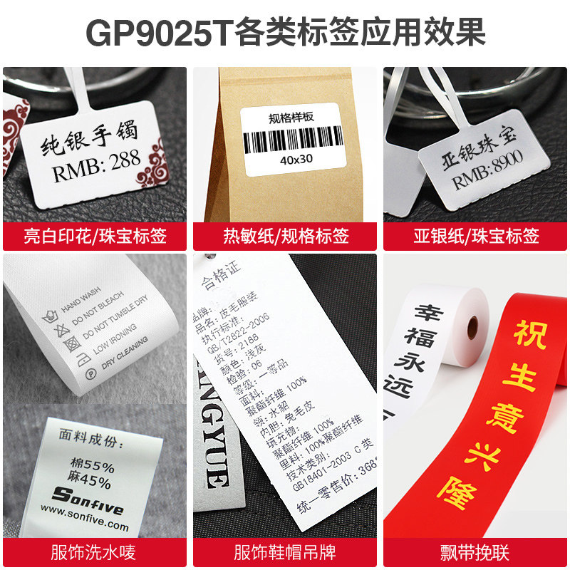 佳博9025T标签打印机手机蓝牙热敏转印条码不干胶服装吊牌水洗标唛飘缎带挽联珠宝铜版板亚银贴纸开业花篮圈