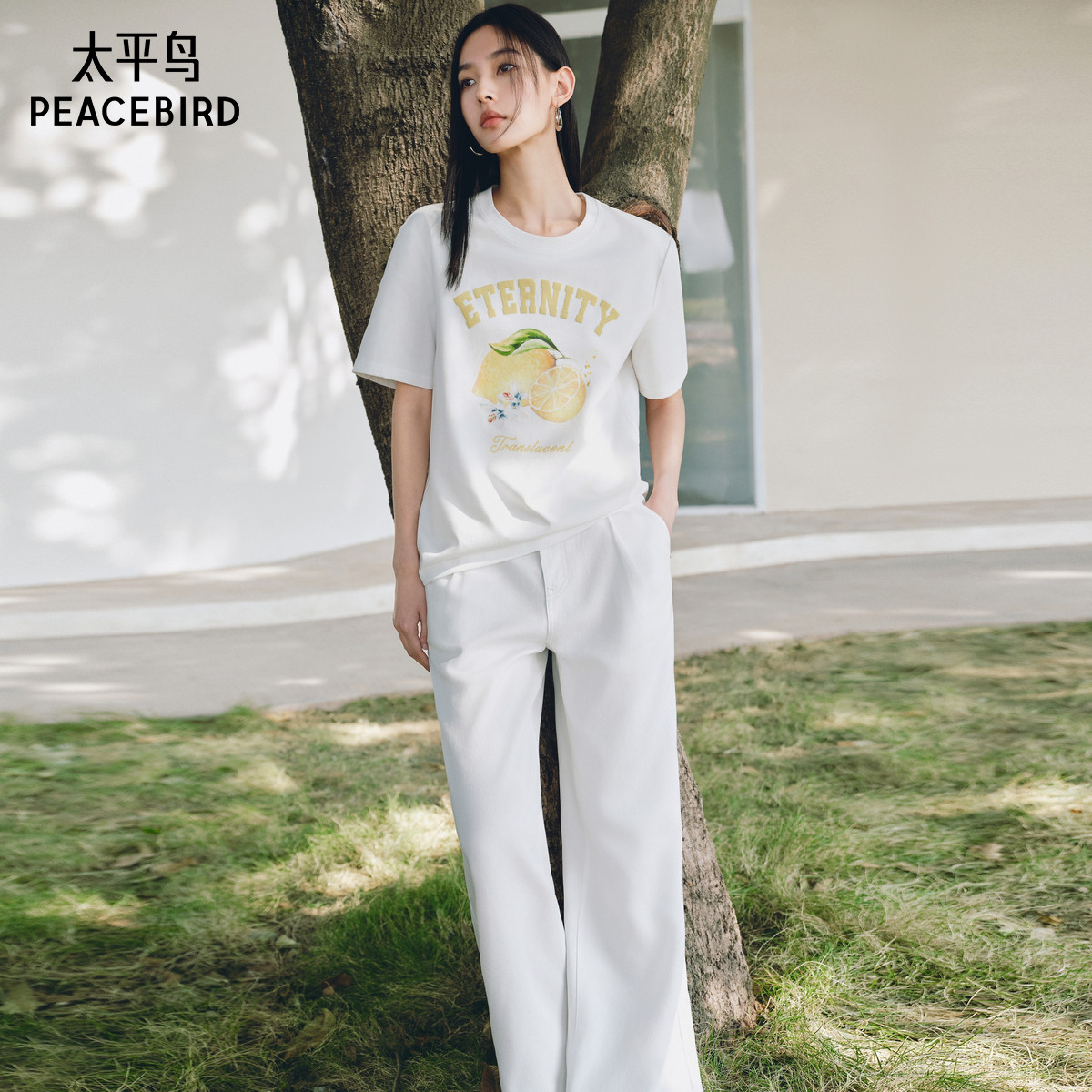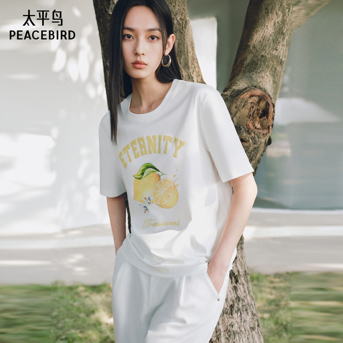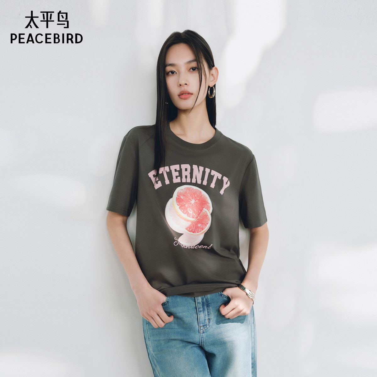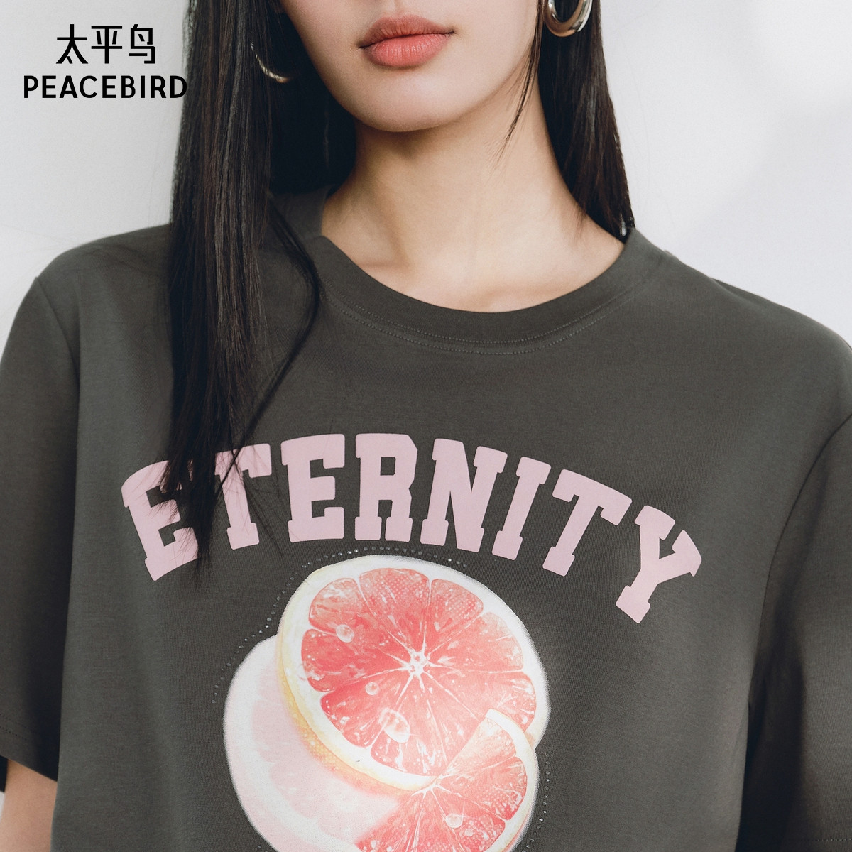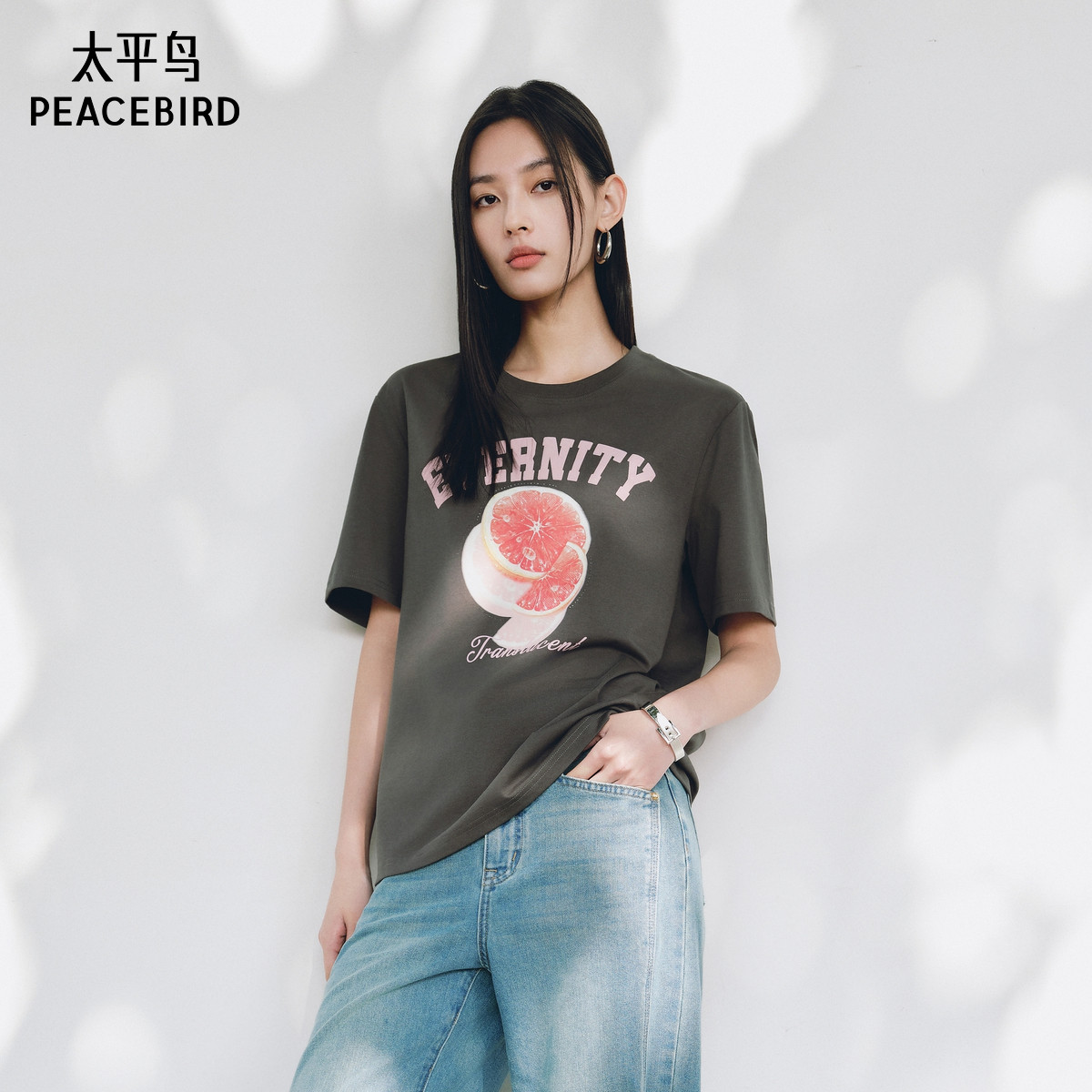 【凉感抗菌】太平鸟夏日清新水果图案短袖T恤25夏季新款宽松上衣