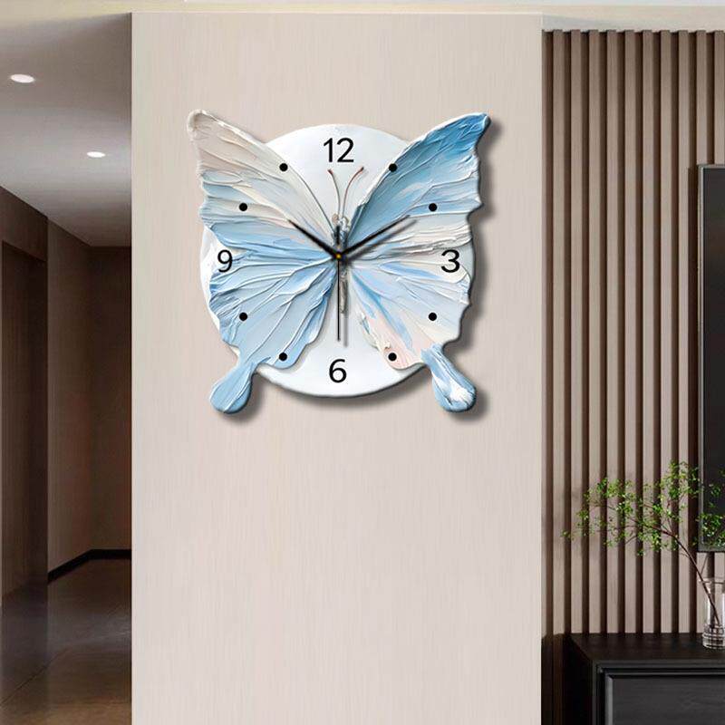 ZB120新款现代简约创意蝴蝶钟表客厅装饰画卧室静音时钟挂画