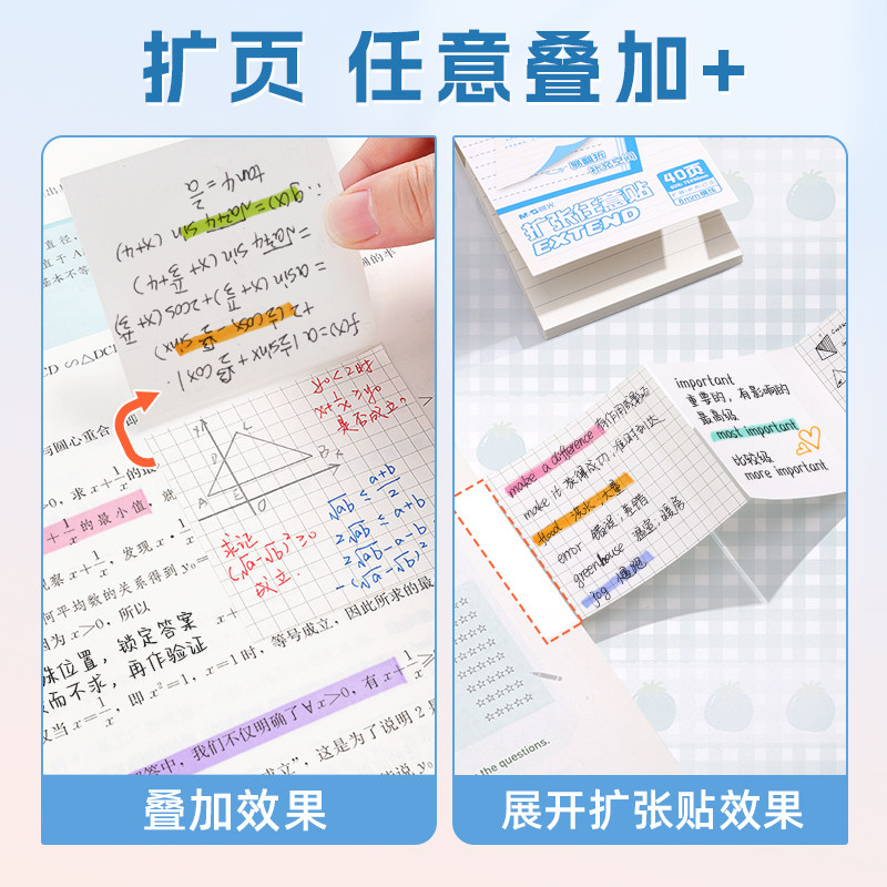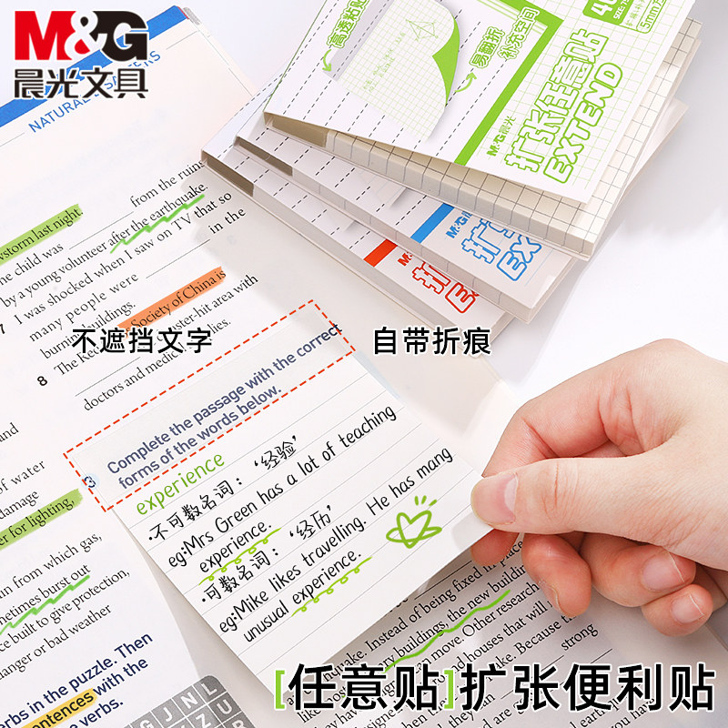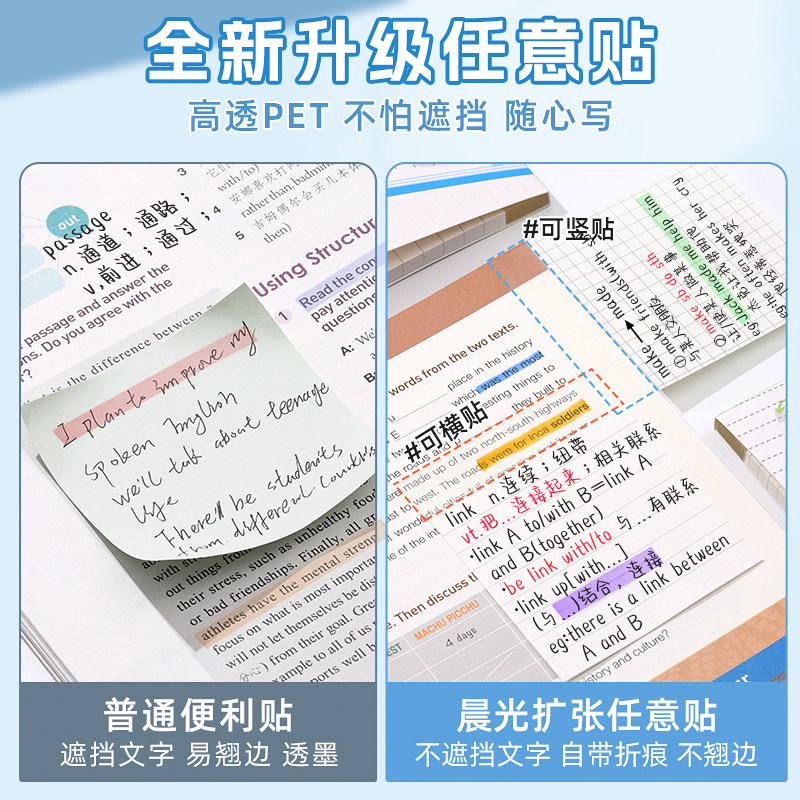 晨光扩张便利贴便签纸不遮挡透明可折叠任意贴初中生专用记笔记小学生订正错题可撕便签本便签贴有粘性办公用