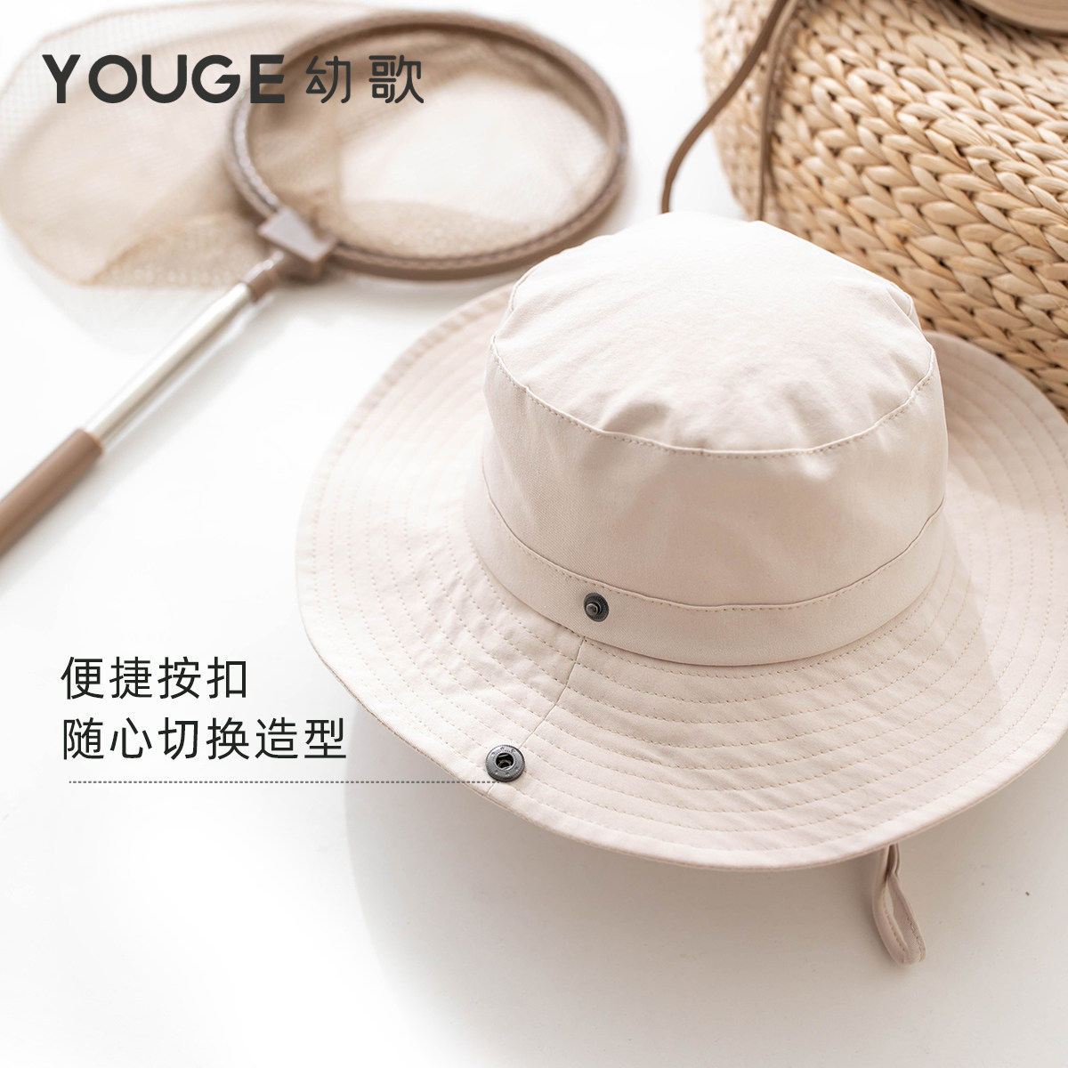 YOUGE幼歌 婴幼儿时尚户外遮阳帽2025春季新款宝宝西部牛仔渔夫帽
