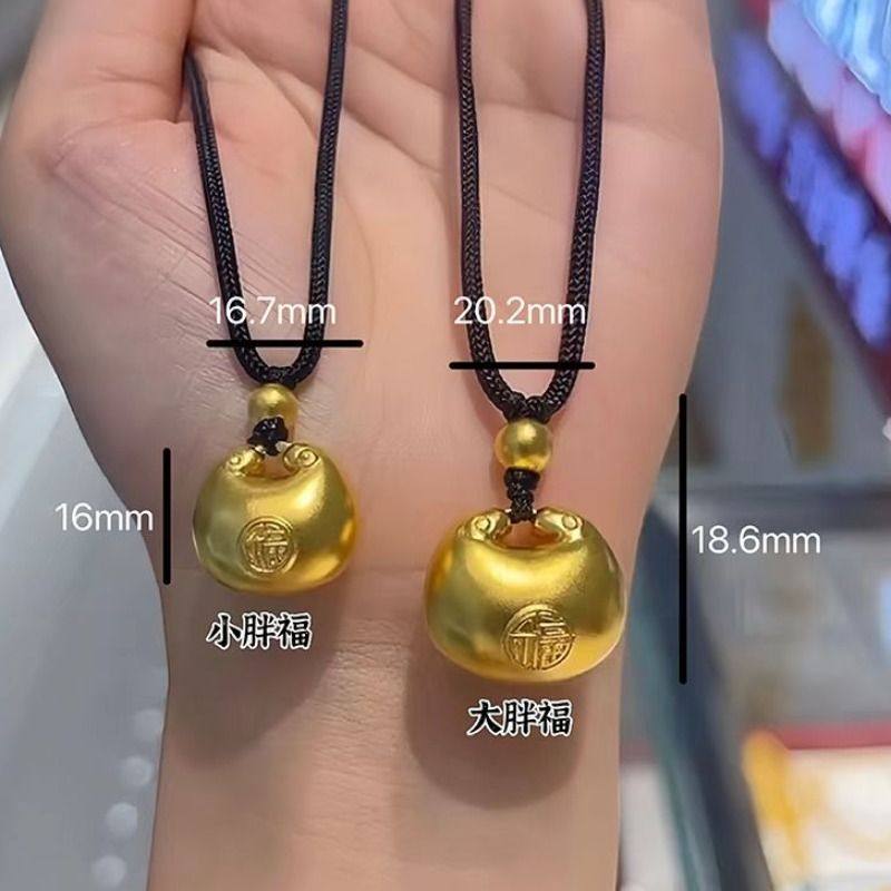 新中式国潮风小胖福吊坠项链女轻奢气质高级感黑色绳子锁包锁骨链
