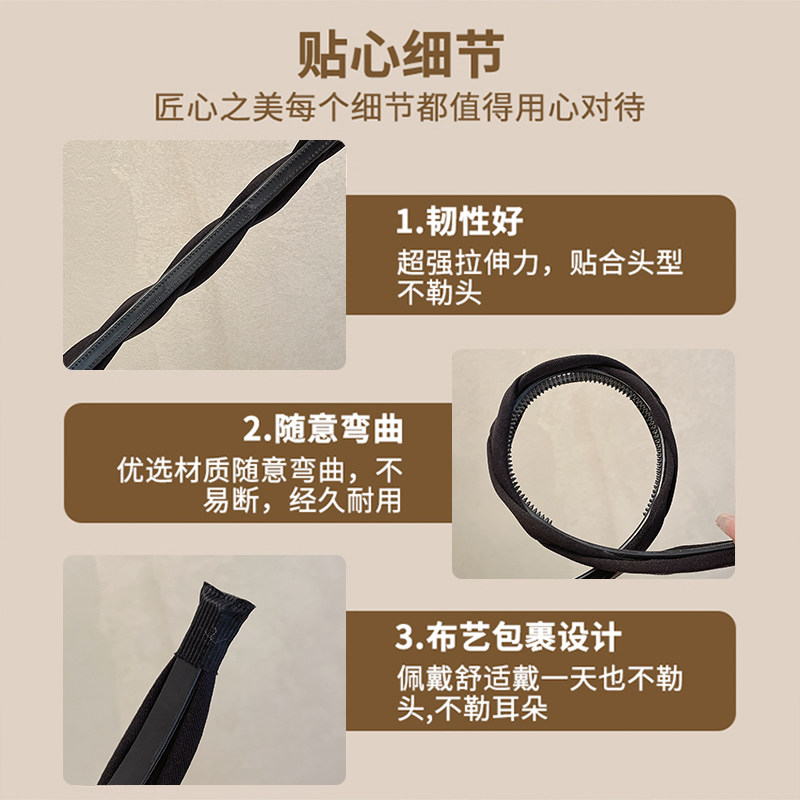 2025夏天高颅顶发箍女黑色发带外出头箍压发防滑发捆头饰宽边带齿