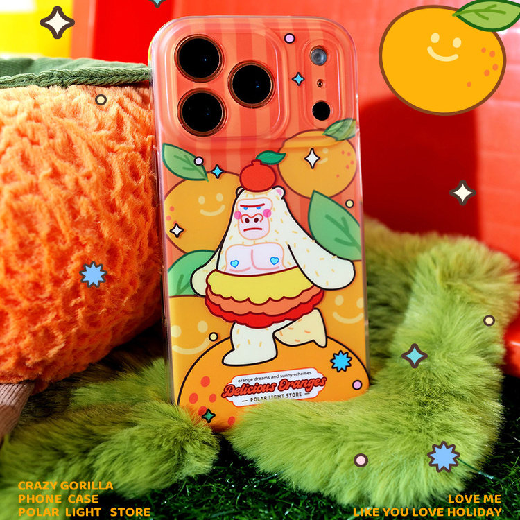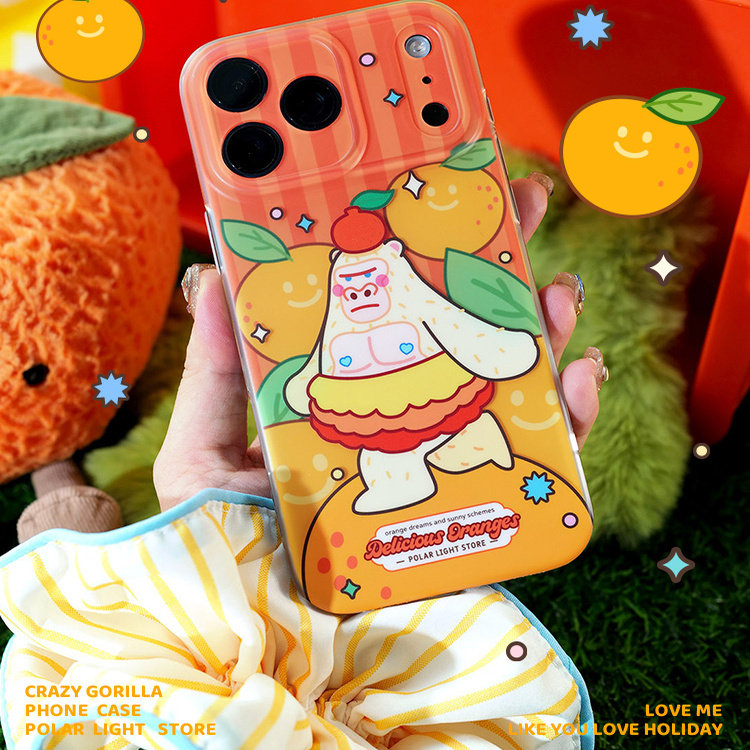 拥抱幸运大橙子!极光士多原创适用苹果17Promax磨砂手机壳iPhone16pm精孔保护套(镜头膜不适用)