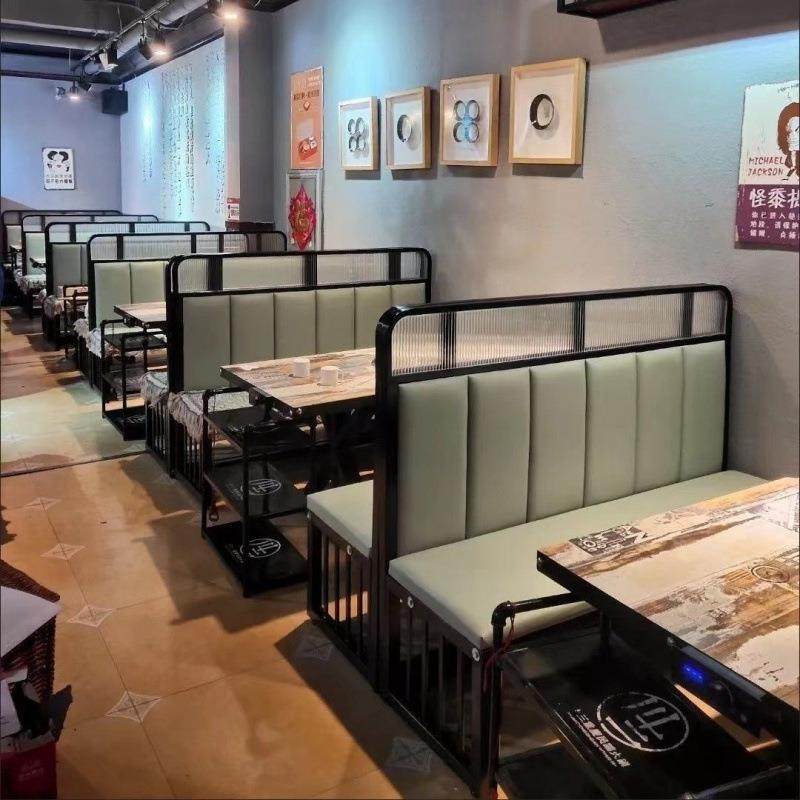 岩板大理石火锅店桌子电磁炉一体自助餐店沙发餐桌椅靠墙卡座薄款