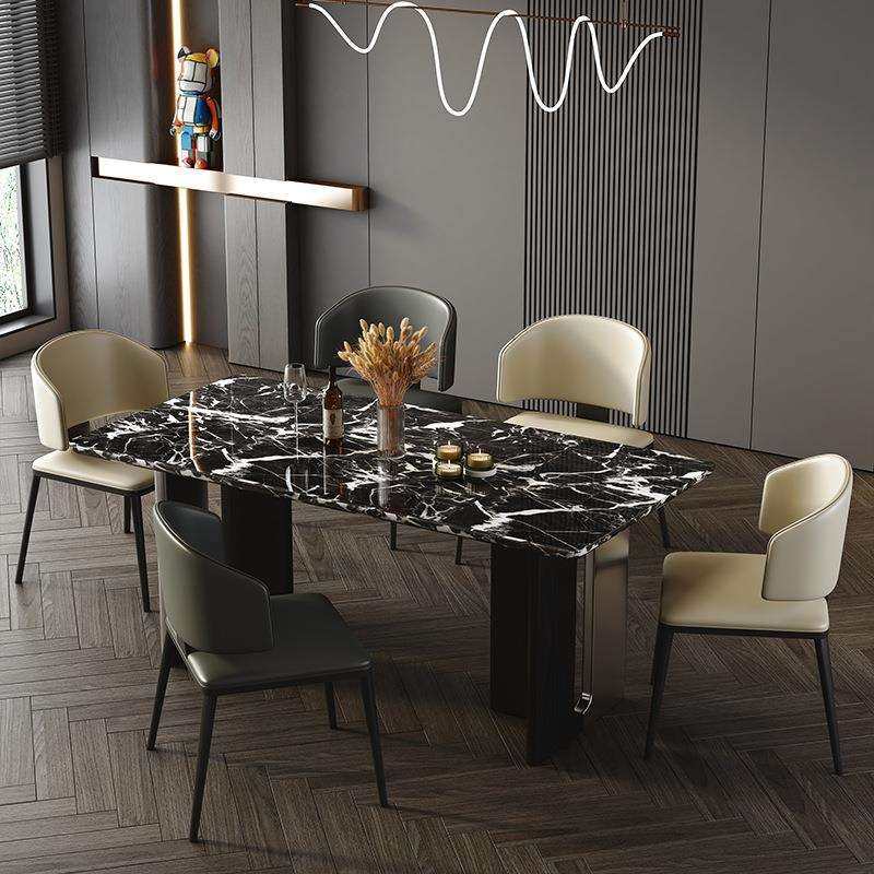 大理石法式餐桌实木轻奢长方形北欧现代意式大小户型餐桌椅