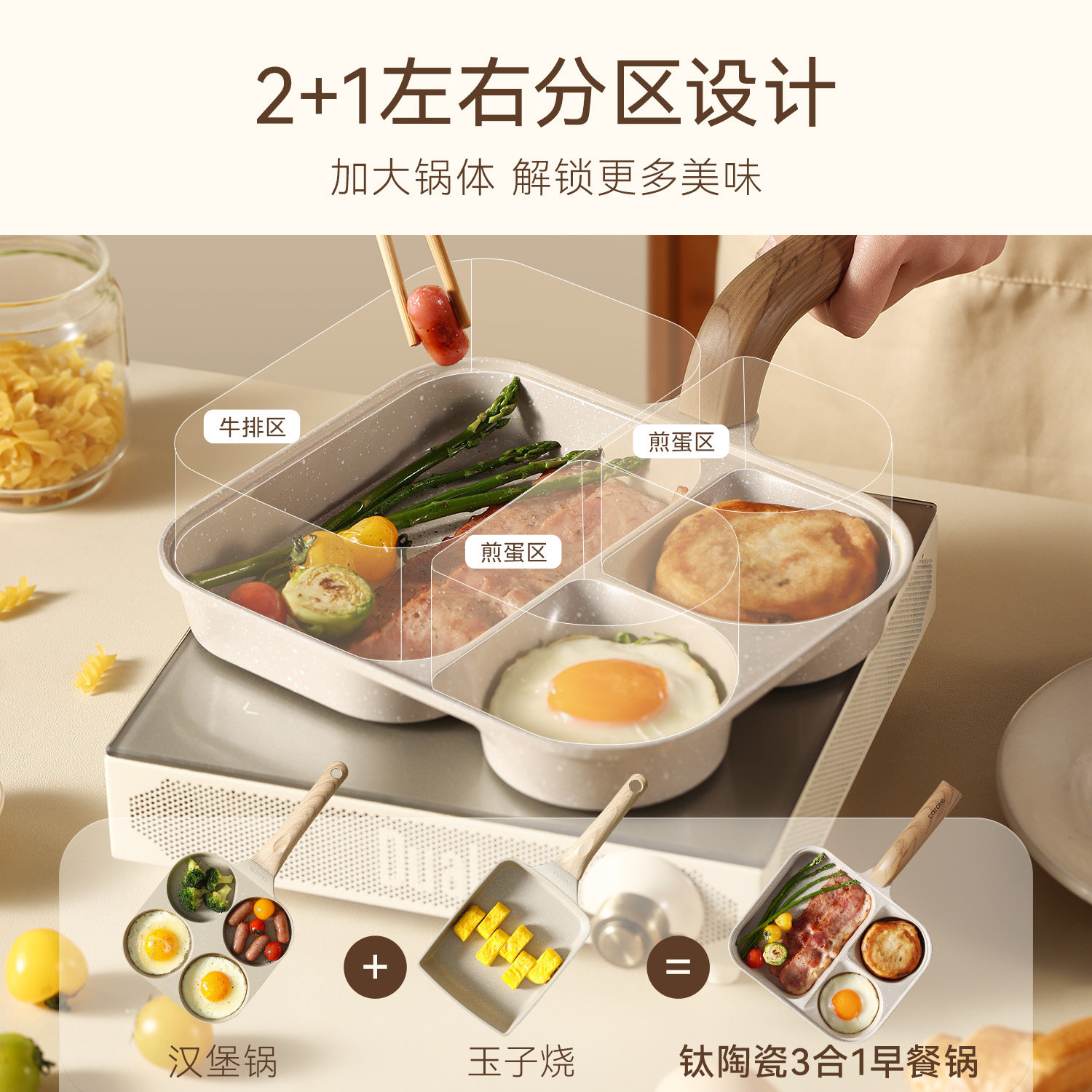 卡罗特早餐锅三合一鸡蛋汉堡锅平底锅钛陶瓷不粘牛排煎饼煎蛋神器
