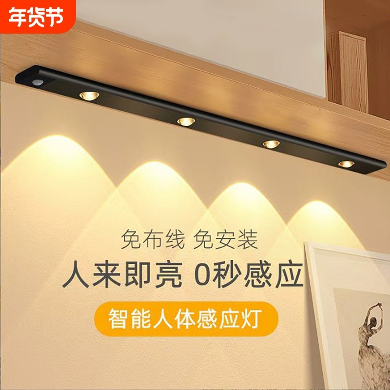 led充电灯带自粘感应无线免接线直角灯酒柜鞋柜衣柜橱柜磁吸灯条